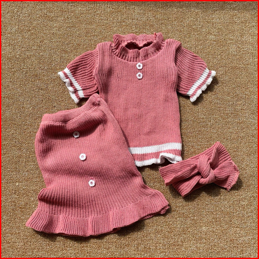Set Rok 3 In 1 Rajut Baju Rok Bando Polos Size S M 0-12 Bulan