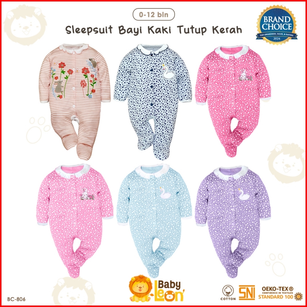Sleepsuit Bayi Baby Leon Baju Bayi Jumpsuit Bayi Lengan Panjang Jumper Piyama Bayi Renda Jumper Bayi Perempuan Bc-808 Bc