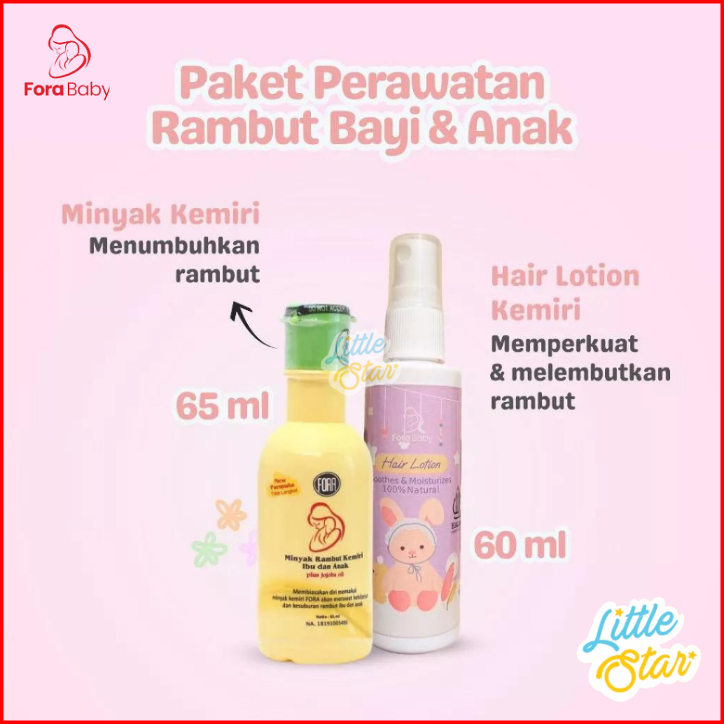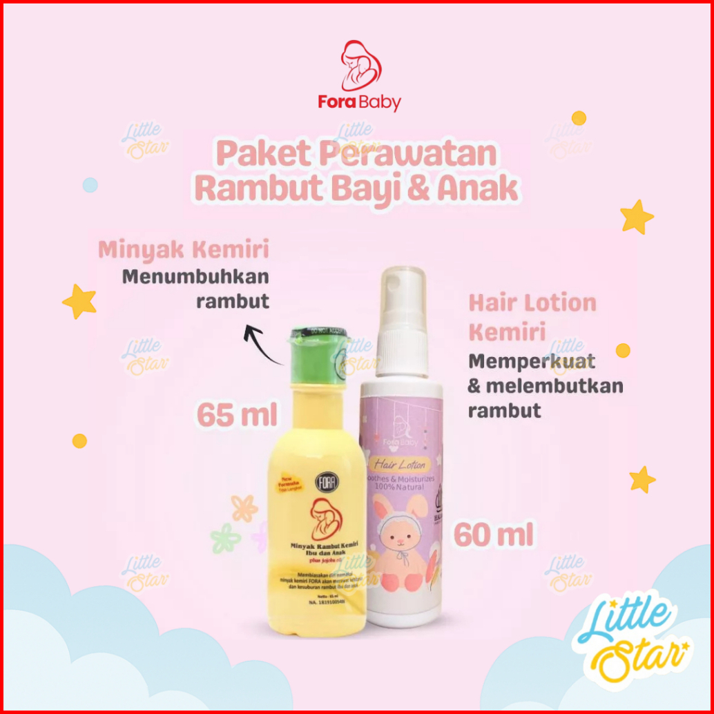 Fora Paket Perawatan Penumbuh Rambut Bayi Bundle Minyak Lotion Kemiri Anak Baby Hair Growth Oil