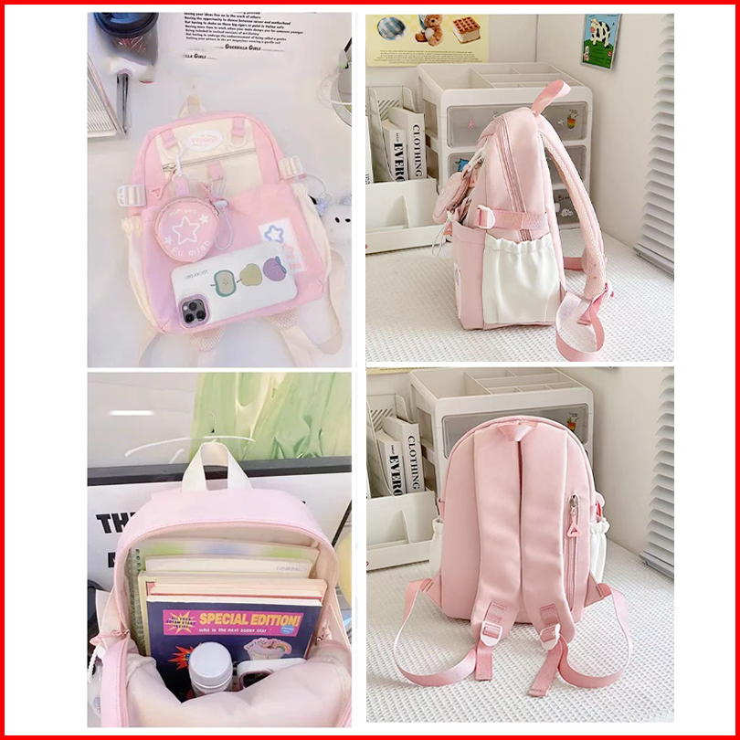 Widget Gratis Tas Sekolah Ins Wanita Lucu Tas Ransel Serut Siswa Perempuan Volume Tinggi Tas Bahu Kapasitas Besar Korea