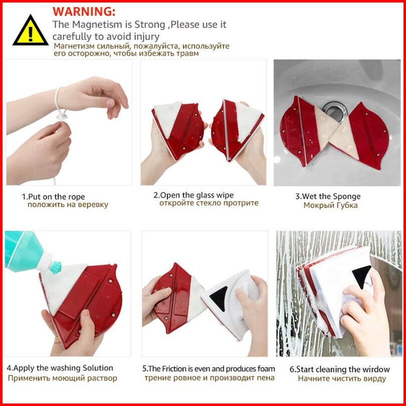 Magnetic Window Cleaner Double Sided Glass Wiper Triangular Magnet