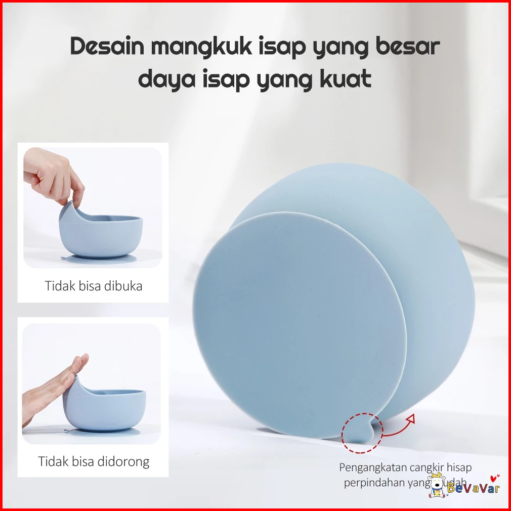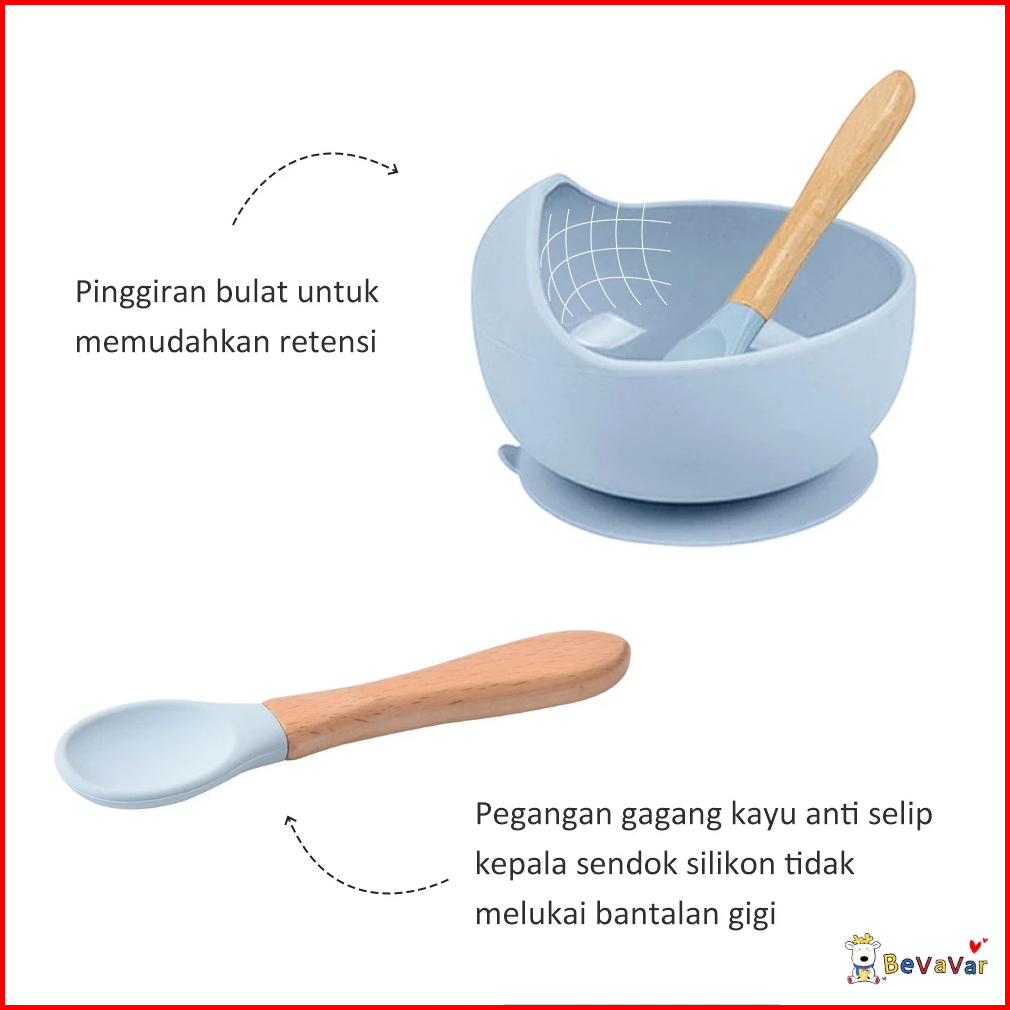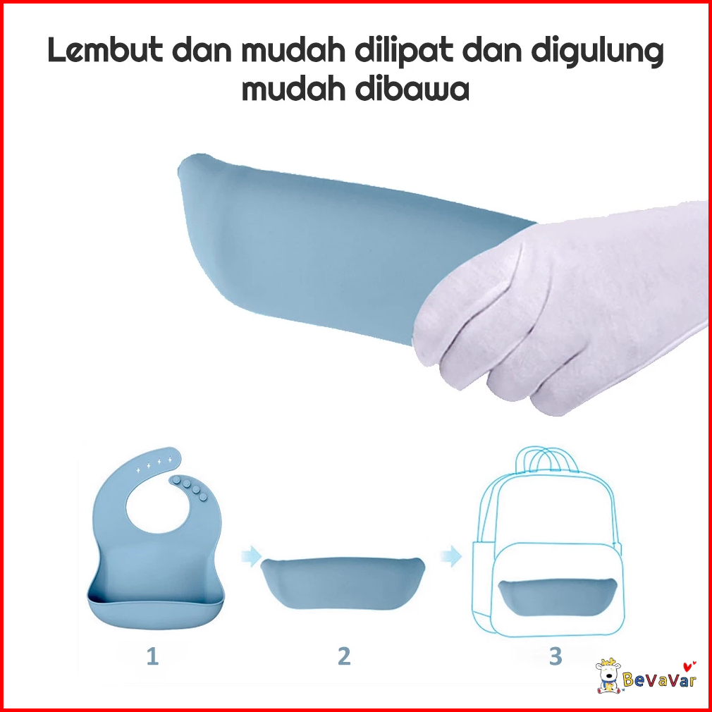 Bevavar 3in1 Alat Makan Anak Bayi Silikon Mangkuk Sendok Bayi Celemek Makan Bayi Silikon Waterproof
