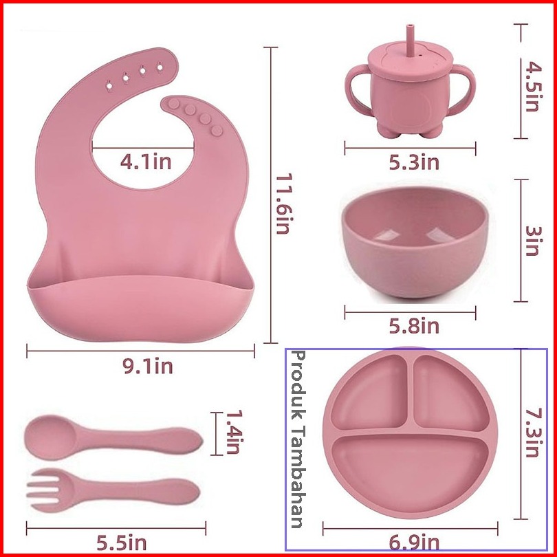 Baobao 5 In 1 Free Box Peralatan Makan Bayi Set Celemek Makan Bayi Mangkok Sendok Anak Training Cup Bayi Silicone Berika