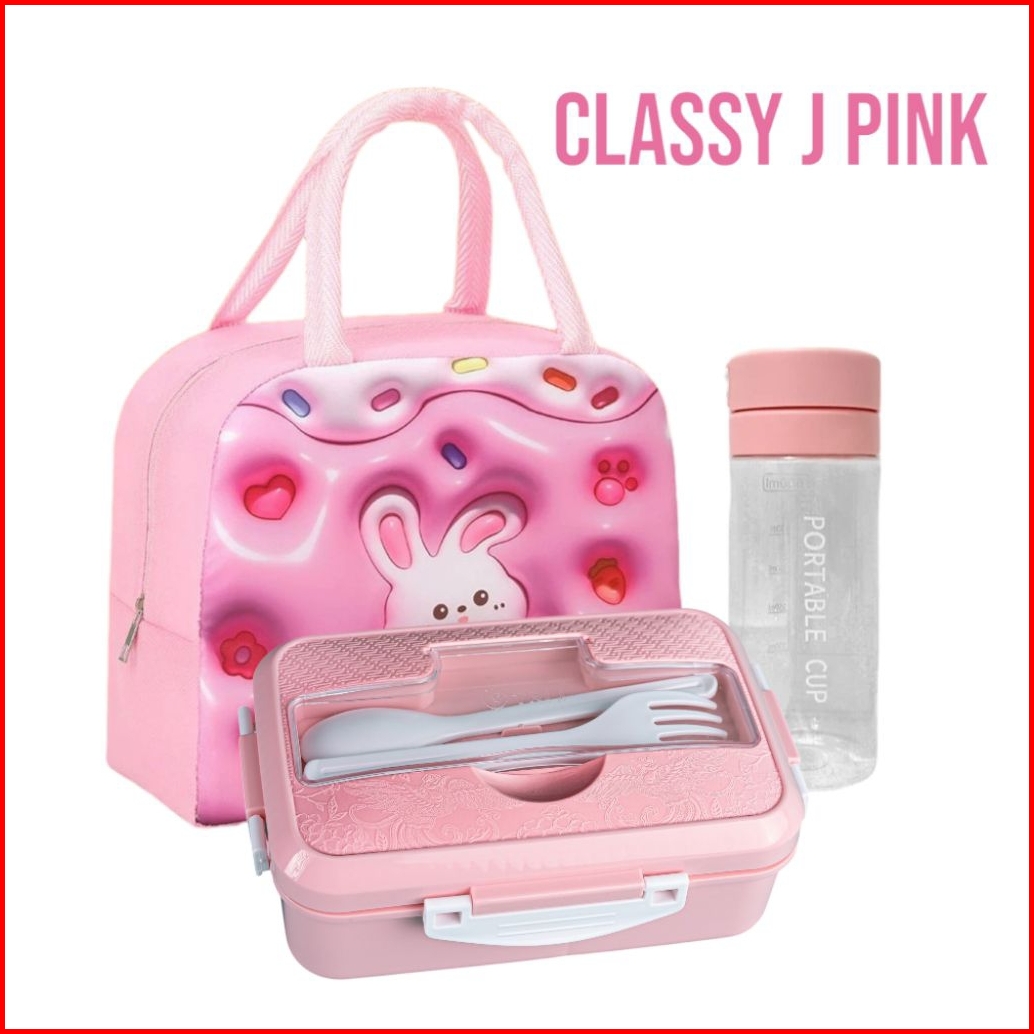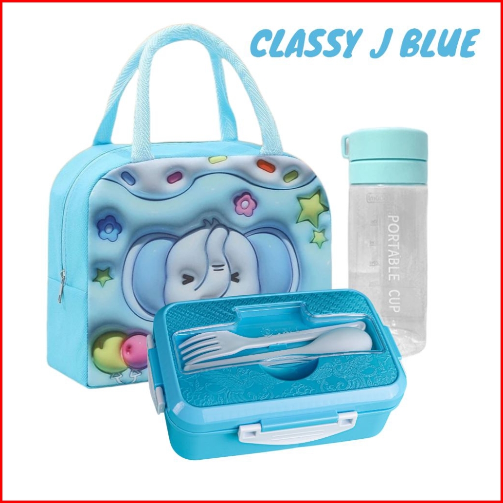 Classy J Kotak Makan Lunch Box Set Paket Sendok Garpu Botol Minum Tas Bekal Makan Anak Sekolah