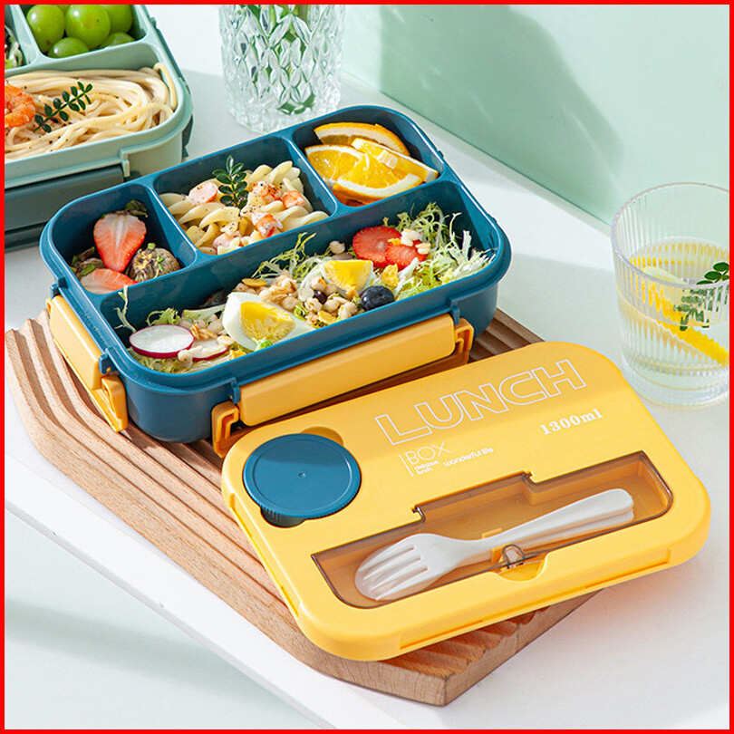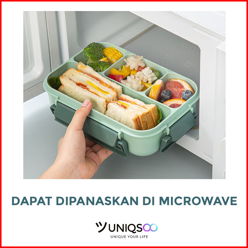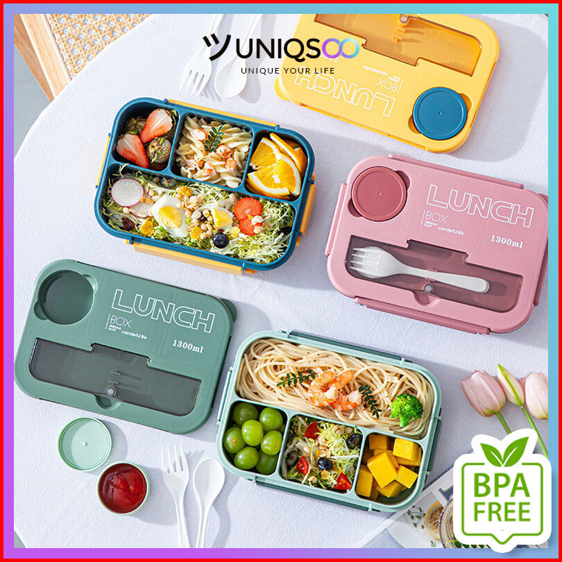 Uniqsoo Lunch Box Bpa Free Kotak Bekal Anti Tumpah 4 Sekat 1300ml Kotak Makan Wadah Bekal Free Sendok Garpu Tempat Saus