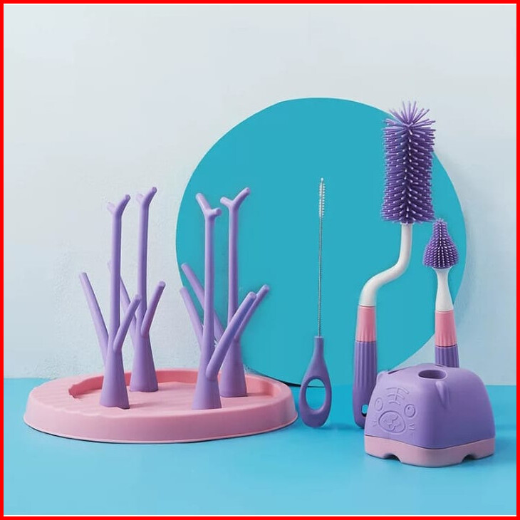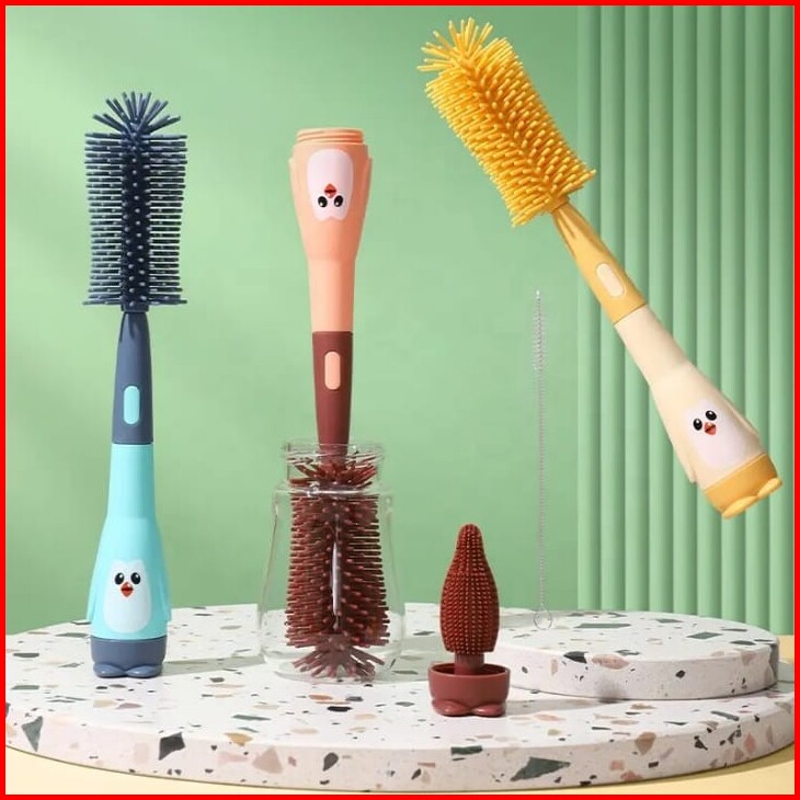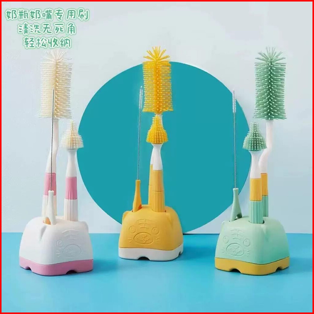 Sikat Silicon Botol Minum Bayi Anak Balita Sikat Botol Sikat Tutup Sikat Sedotan Lengkap Portable 4in1