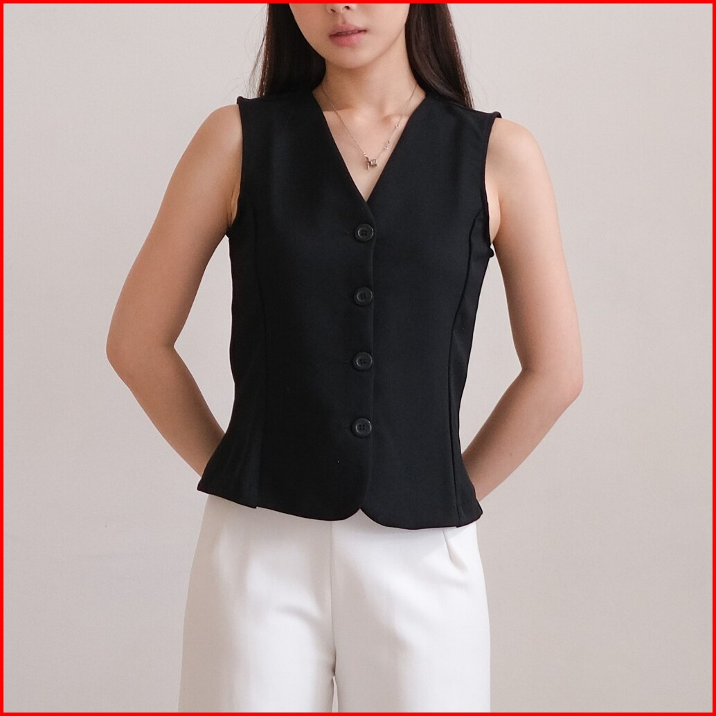 Cozy - Vest Hitam Wanita Slim Fit Outer Wanita Tanpa Lengan Formal Kerja Casual Tebal Nyaman