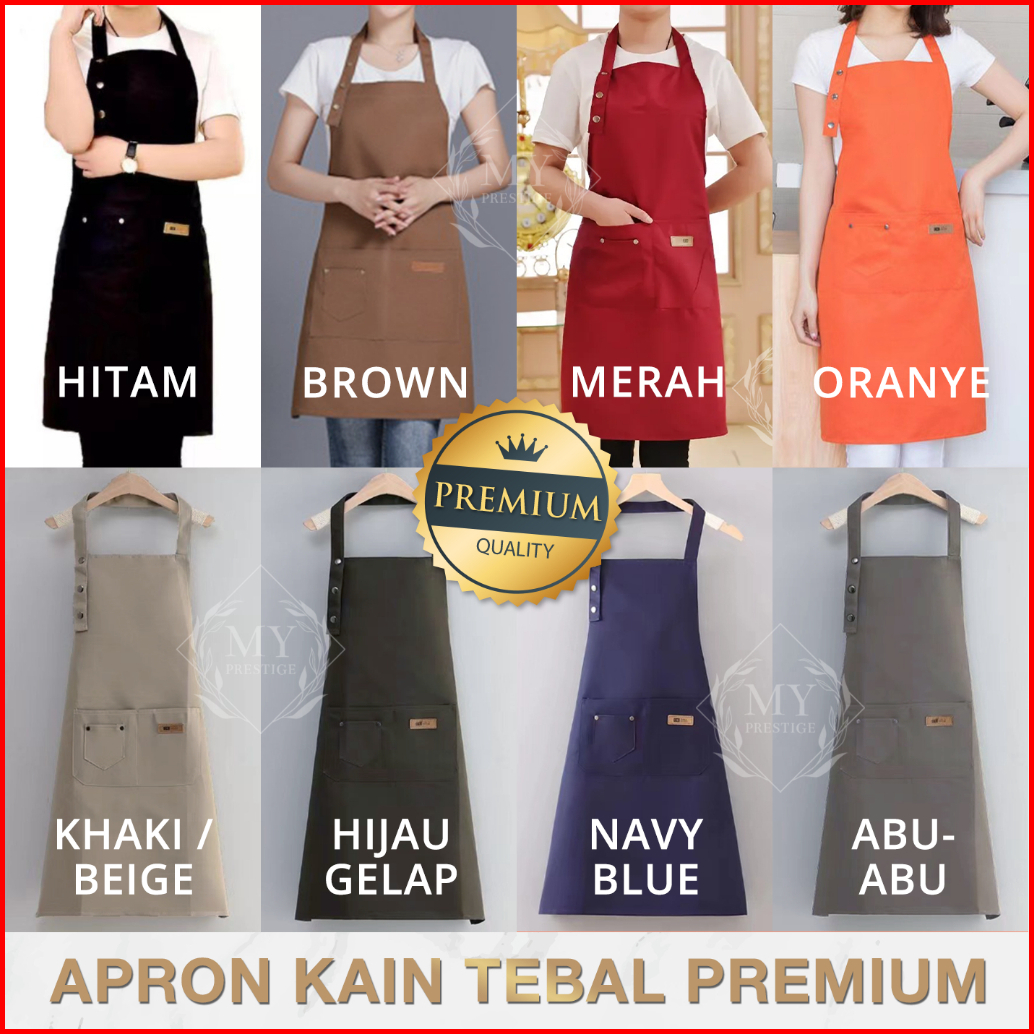 Celemek Masak Apron Kain Pria Wanita Koki Cafe Dapur Hitam Cokelat Hijau Biru Merah Krem Oranye Abu