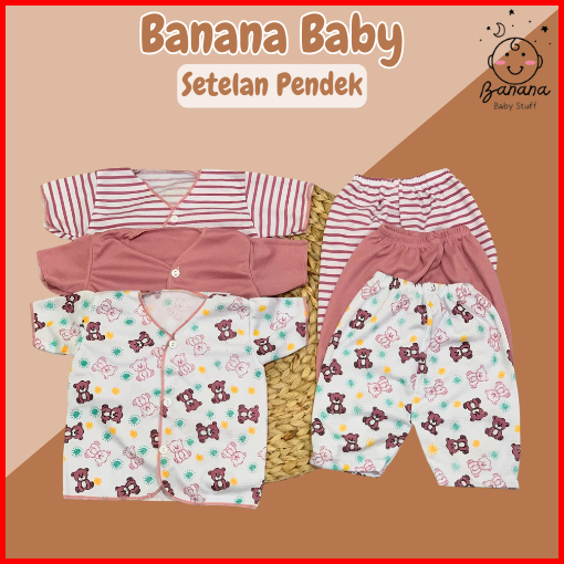 Banana Stuff - Setelan Pendek Bayi Newborn 0-3 Bulan 3set Baju Pendek Dan Celana Pendek