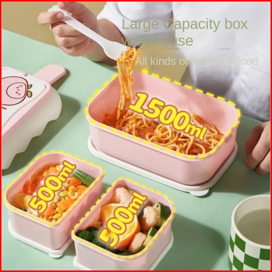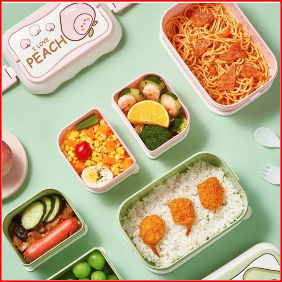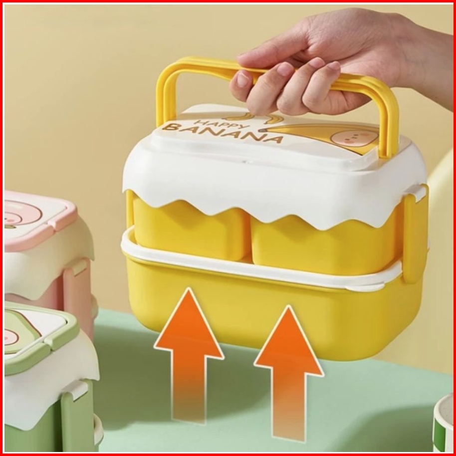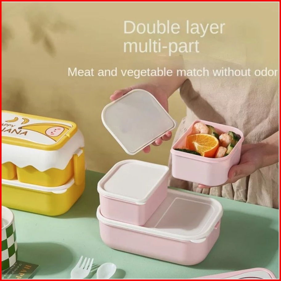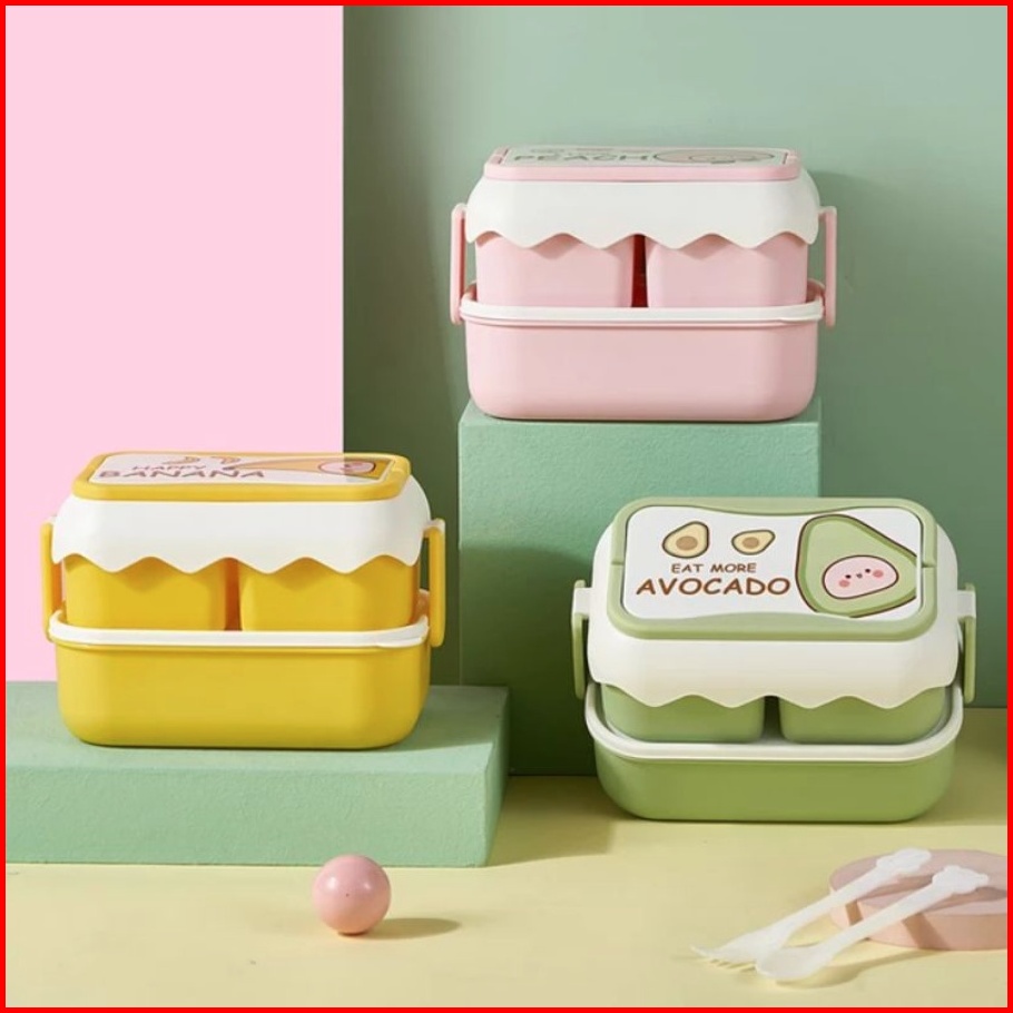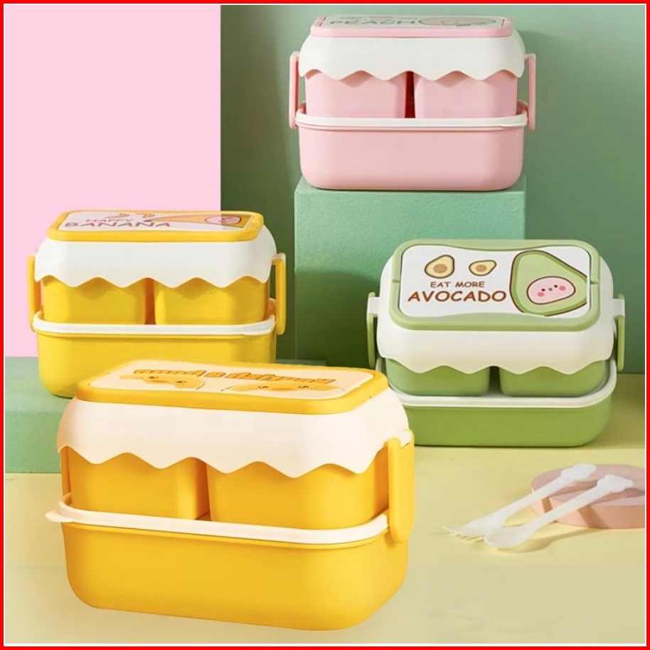 Tempat Makan 2 Susun Kotak Bekal Makan Siang Anti Bocor Lunch Box 6363 Anti Tumpah Free Sendok Garpu Chocho88 Shop