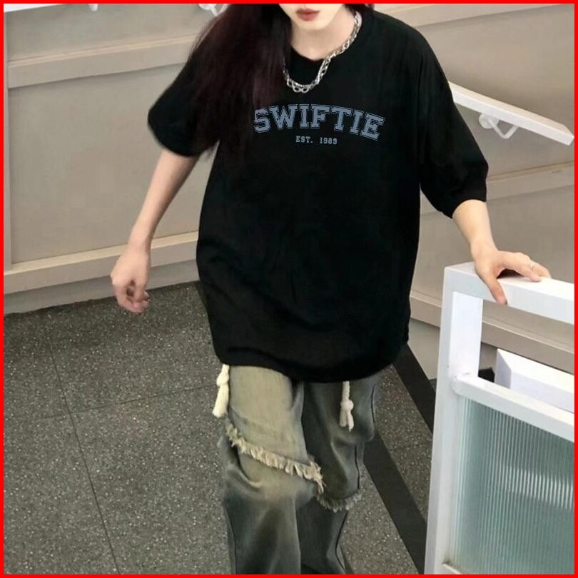 Jessica Korean Tshirt Lengan Pendek Oversize - Korean Style Swiftie Printed Tee Bahan 100 Cotton