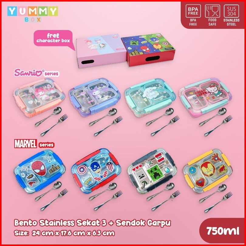 Sanrio -marvel Bento Stainless 304 Sekat3 Sekat 4