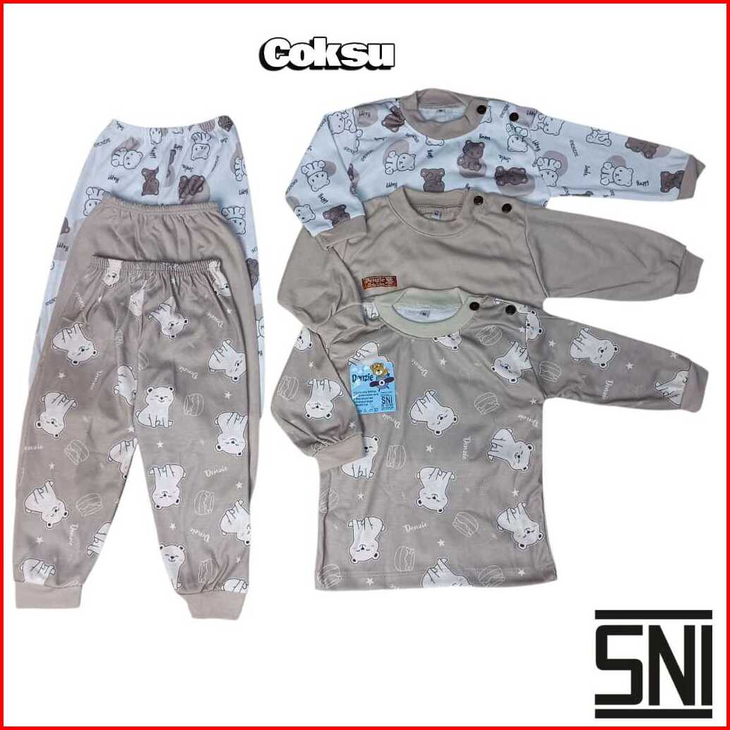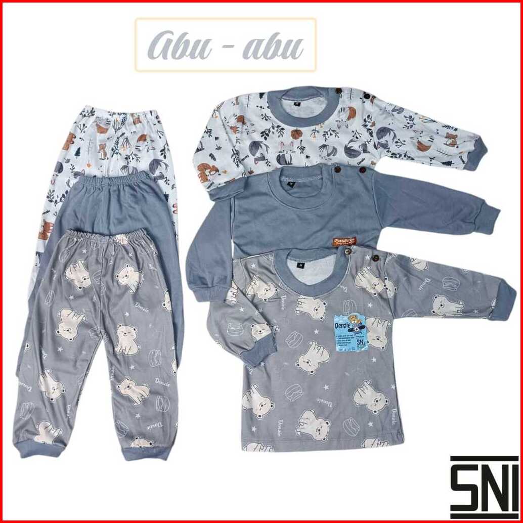 Denzie Sni Paket 3 Set Baju Piyama Bayi Setelan Panjang Usia 3-24 Bulan Laki Laki Perempuan Printing