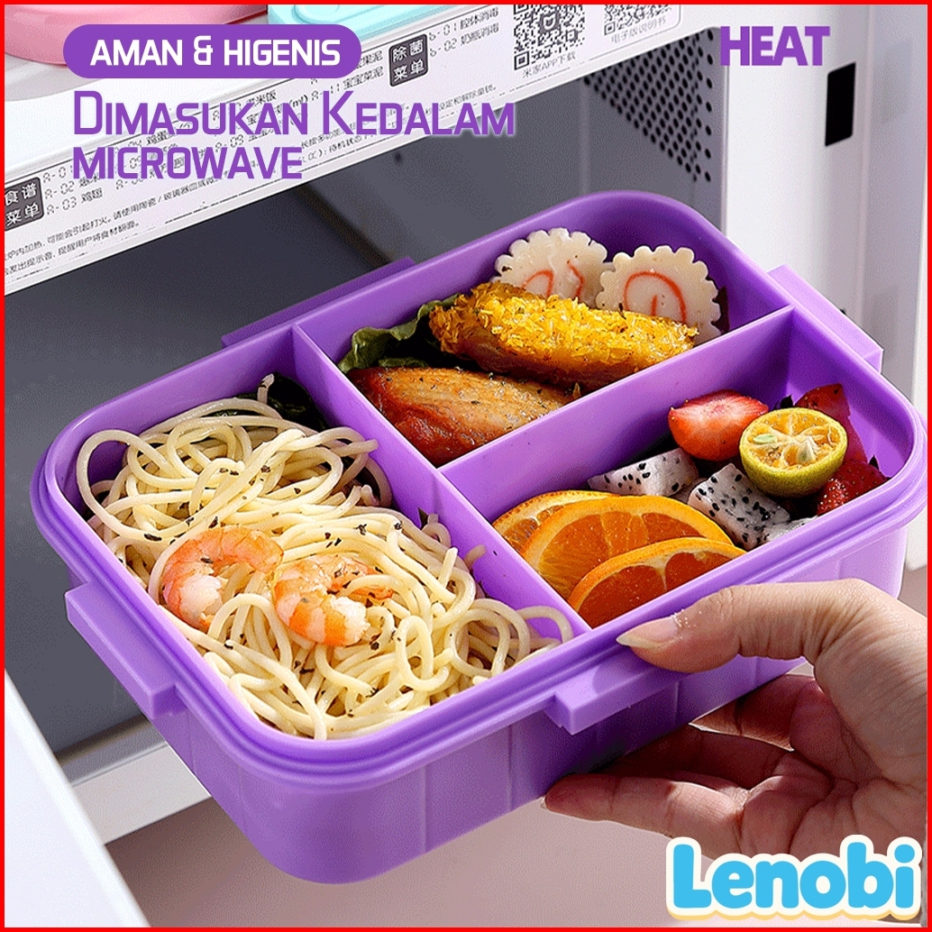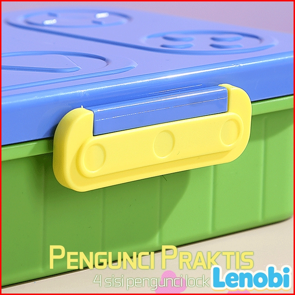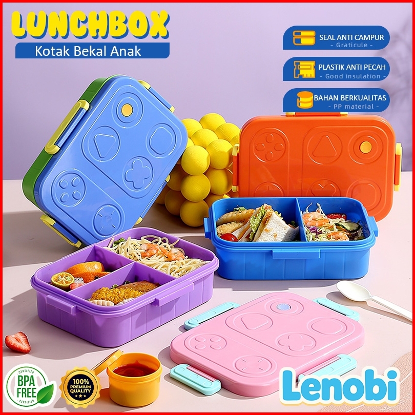 Lenobi - Lunch Box Game Button - Kotak Bekal Anak Anti Tumpah 3 Sekat 1200ml Bento Box