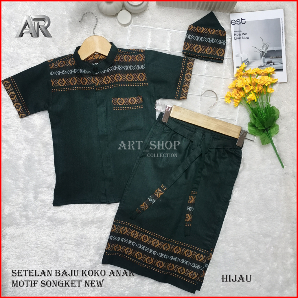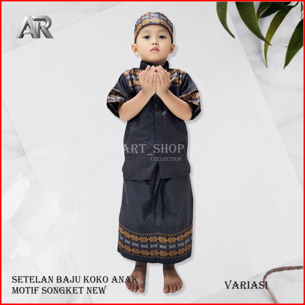 Sarkoci Setelan Sarcel Koko Peci Anak Usia 1-12 Thn Motif Songket New
