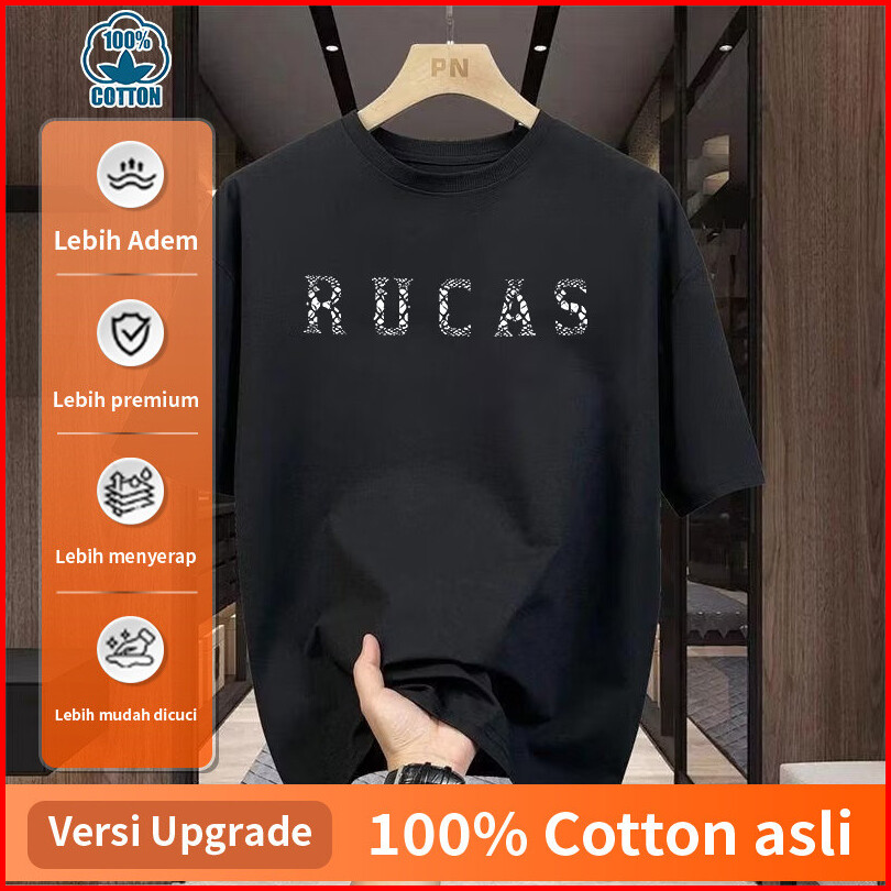 Baju Kaos Pria - Kaos Pria Hitam Dengan Desain Teks Rucas Ornamental