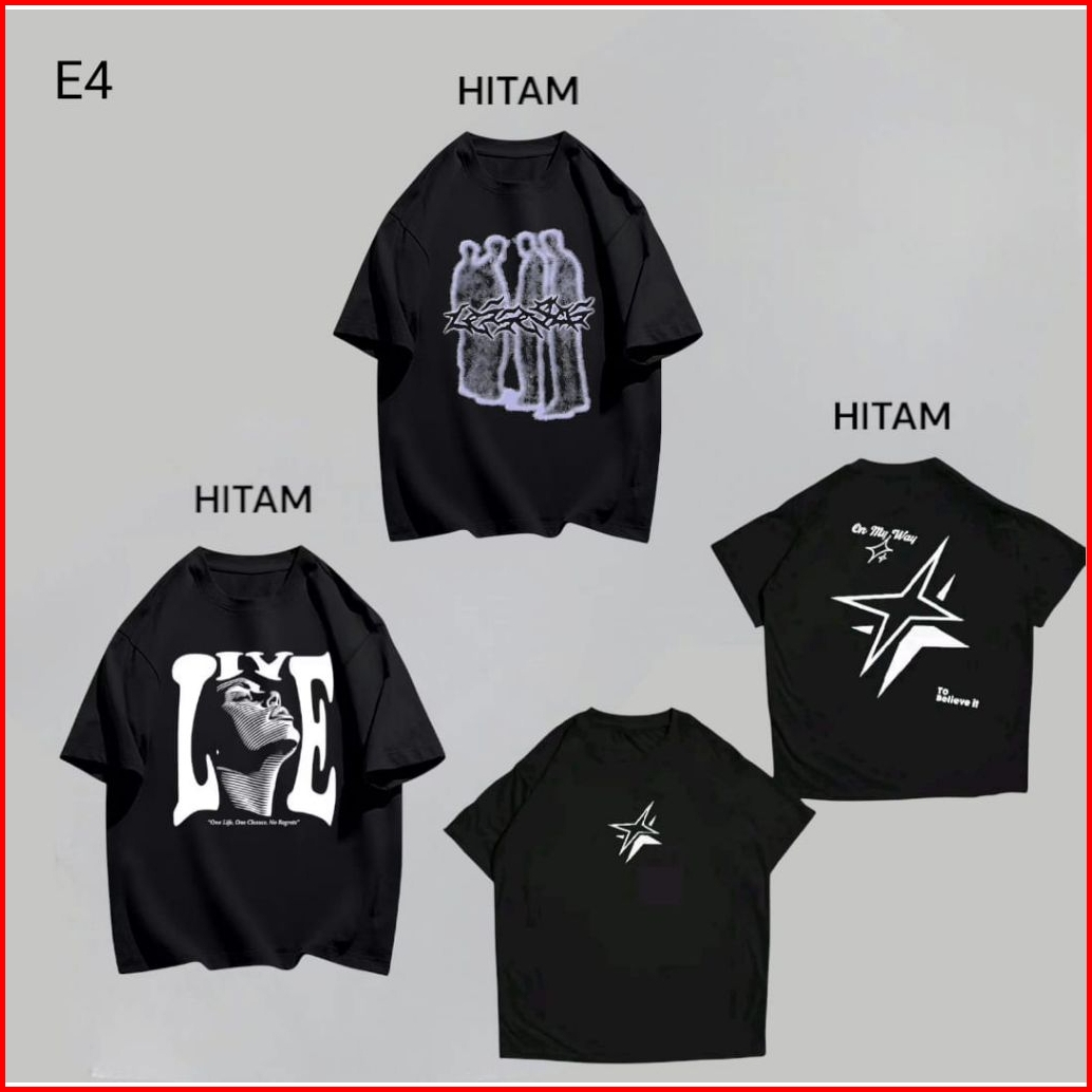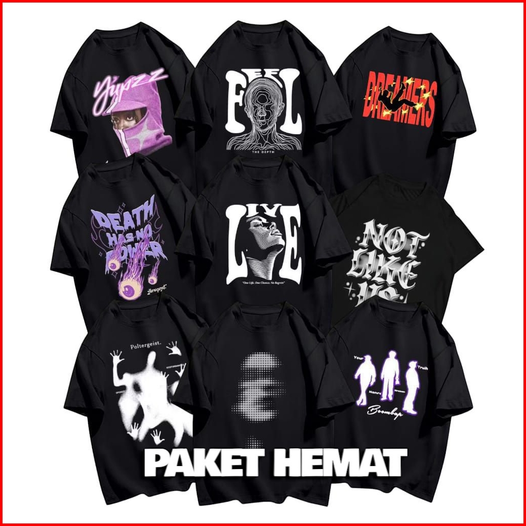 Combo Paket Kaos 3pcs Distro Hitam Jumbo Skena Hemat M L Xl 2xl 3xl