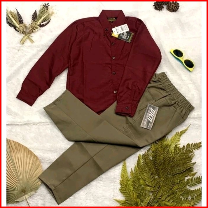 Setelan Kemeja Anak Lengan Panjang Celana Chinos Anak Umur 1-14 Tahun Stelan Kemeja Anak Laki Laki 1 2 3 4 5 6 7 8 9 10