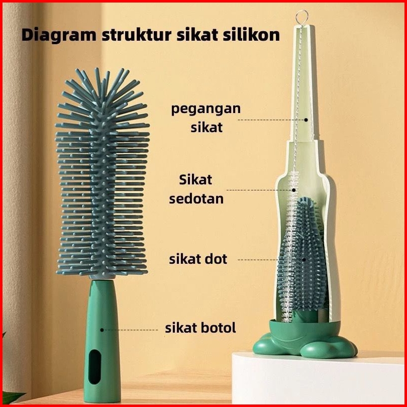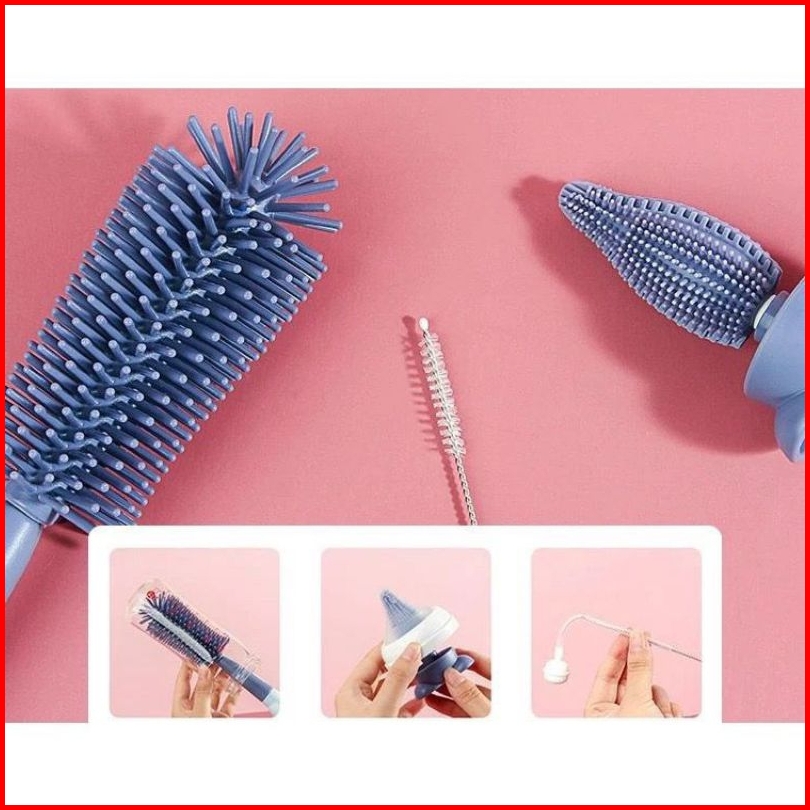 Sikat Botol Sisu Bayi 3 In 1 3in1 Silikon Penyikat Pembersih Penyuci Botol Dapat Memutar 360 Derajat Bersih Dot Baby Set