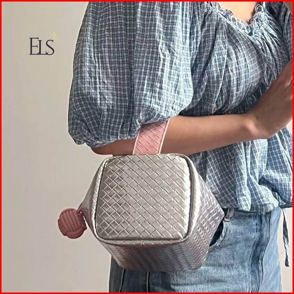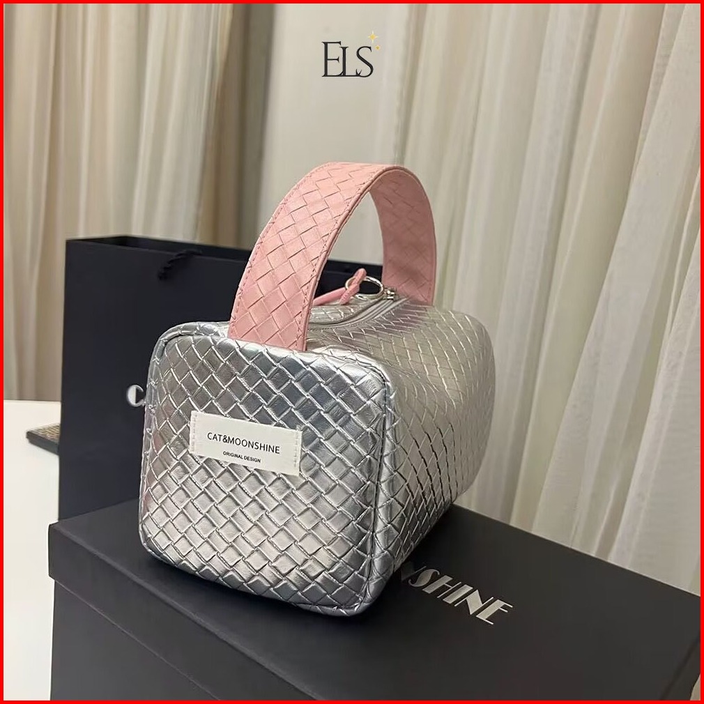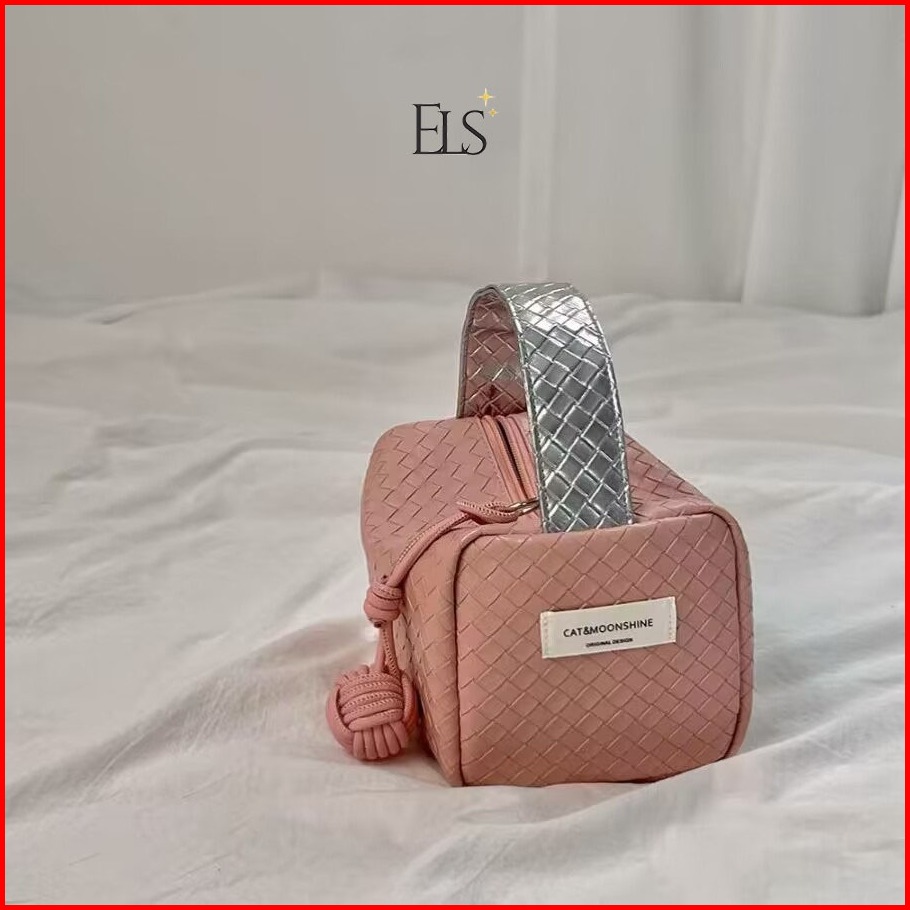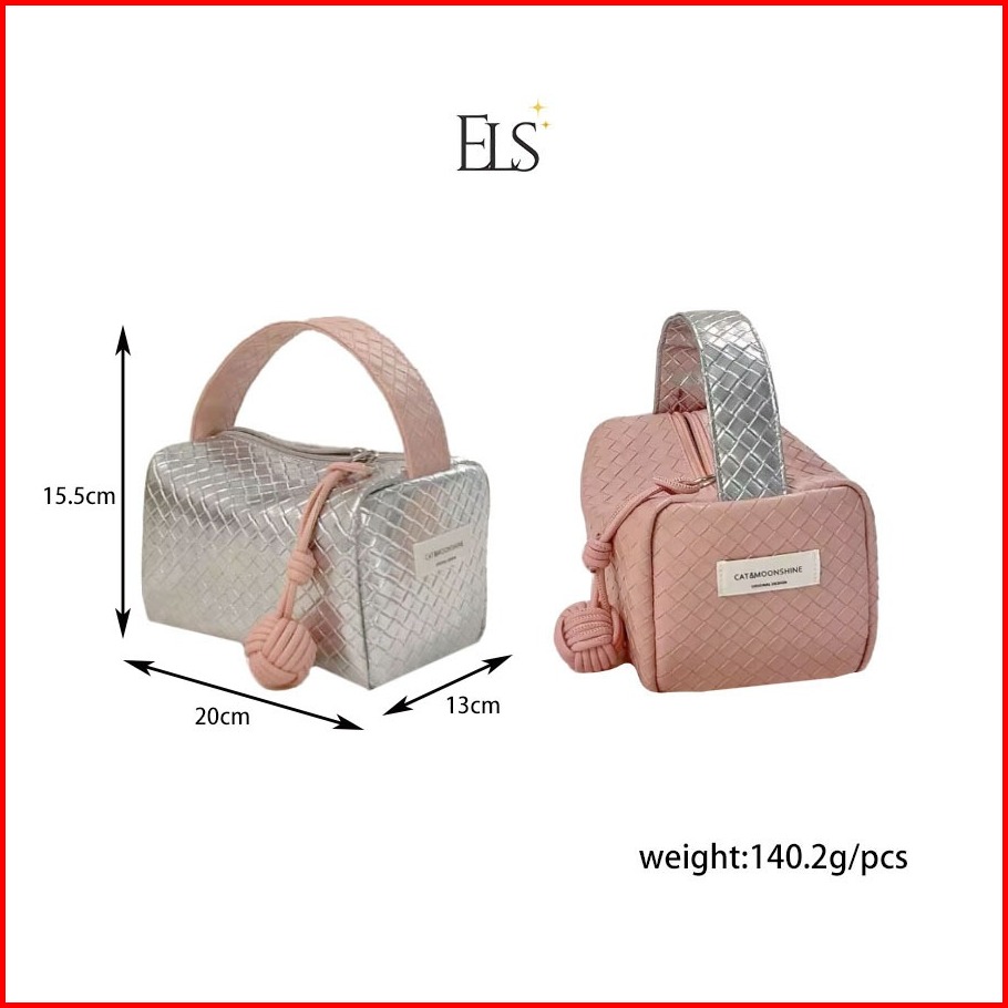 Elsa Pouch Cosmetic Make Up Silver Pink Unik Korean 055
