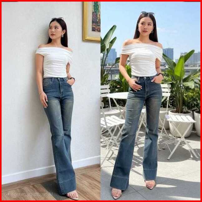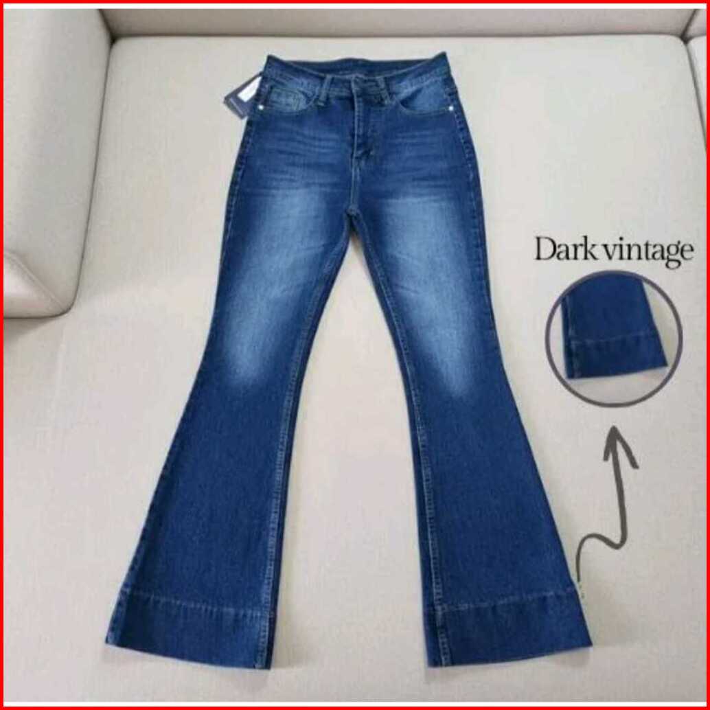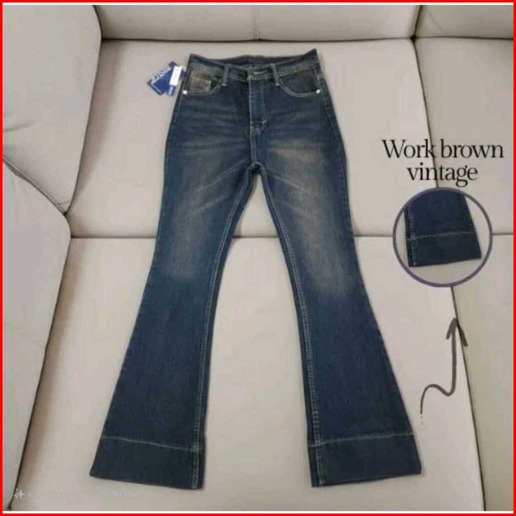 Jennie-highwaist Cutbray Jeans Celana Flare Panjang Stretch Wanita Retro Vintage Lipat Bawah Lebar
