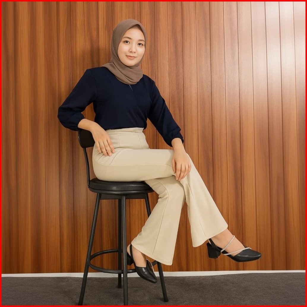Cutbray Rib Knit Japan Line - Celana Panjang Wanita Korean Style Highwaist - Celana Cutbray Knit Wanita