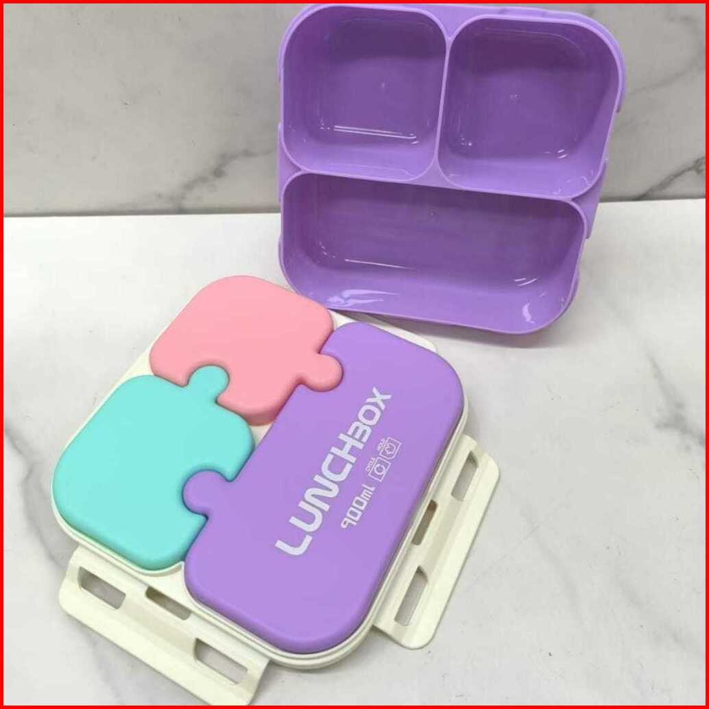 Lunch Box Terbaru Puzzle Kotak Makan 3 Sekat Free Sendok Kapasitas 900ml Takasimura Store