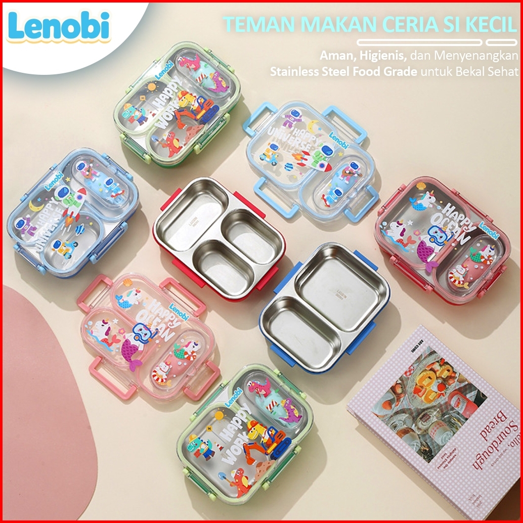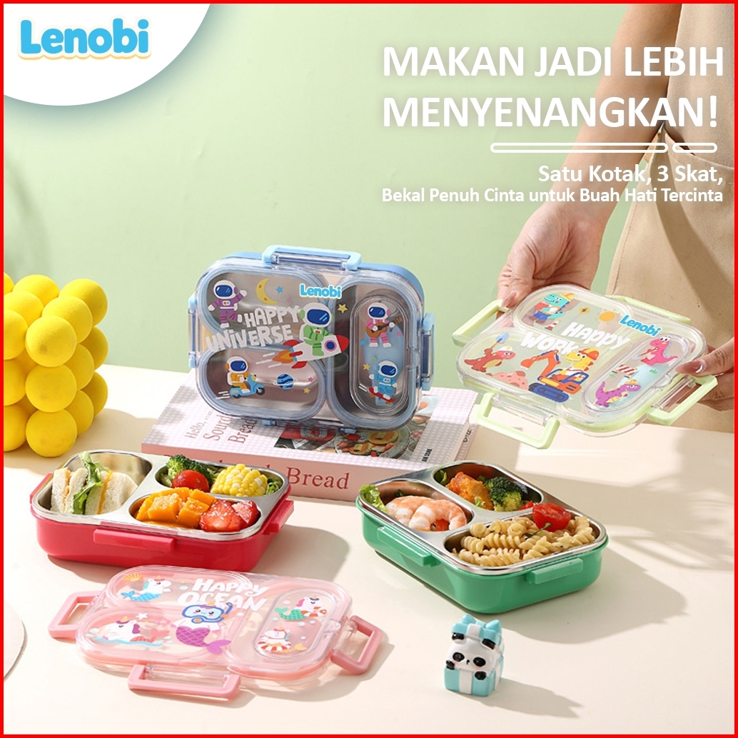 Lenobi - Lunch Box Anak 3 Sekat Unicorn Mermaid Kotak Bekal Lucu Bpa Free Anti Bocor Bento