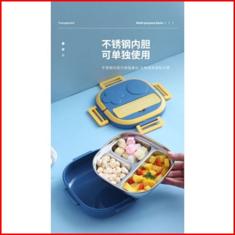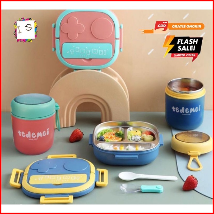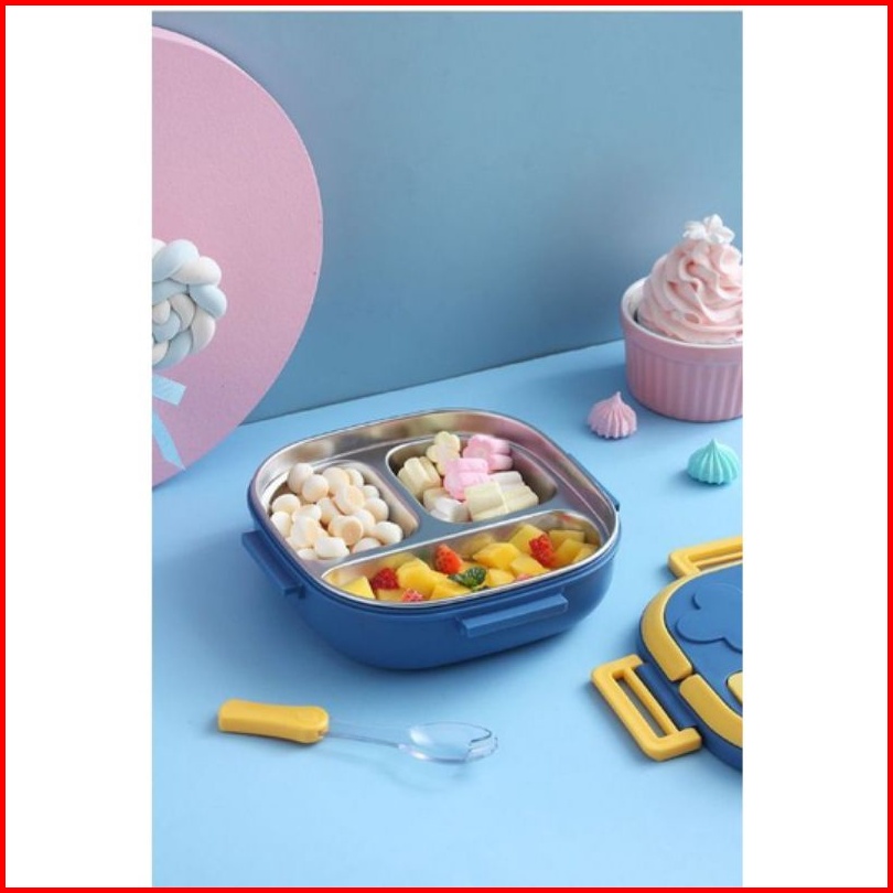 Kotak Makan Stainless Steel 3 Sekat Free Sticker Box Tedemei Lunch Box Premium