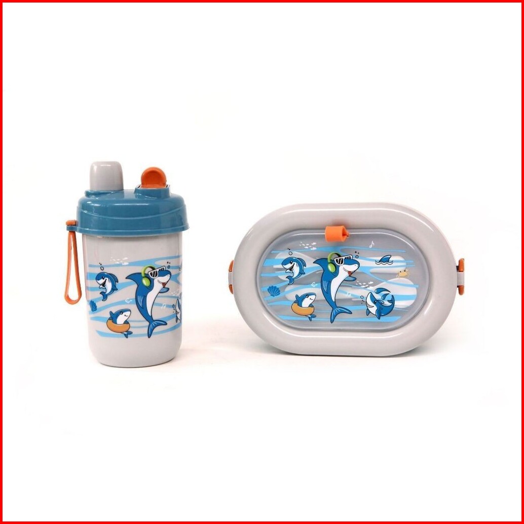 Set Kotak Makan Botol Minum Anak 2 Skat 800-1000ml Sendok Garpu Motif Lucu Bpa Free Lb217 218