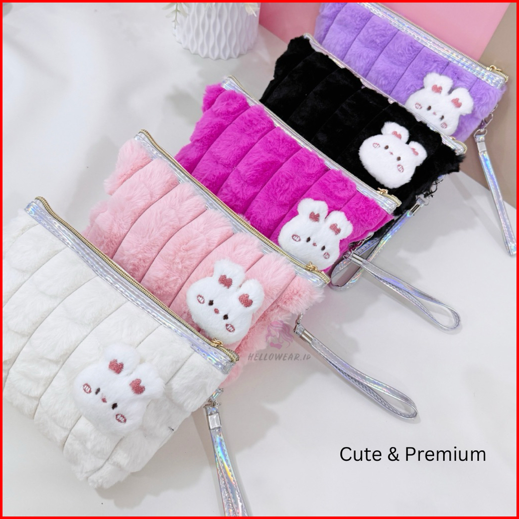 Makeup Bag Rabbit Puffy Pouch Bulu Clutch Tas Kosmetik Kelinci Lucu Kawai Aesthetic Serbaguna