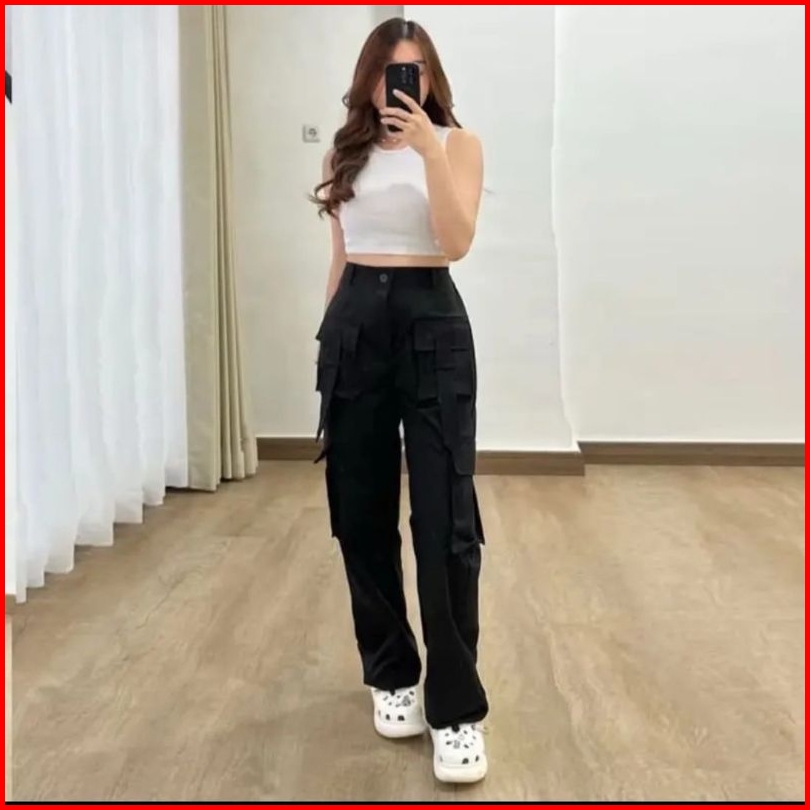 Ollip Pants Cargo Highwaist - Yura Cargo Wanita - Celana Panjang Kargo Wanita Dewasa Casual - Baggy Pants - Celana Panja