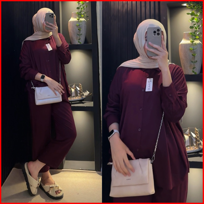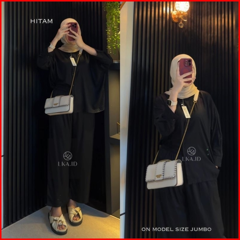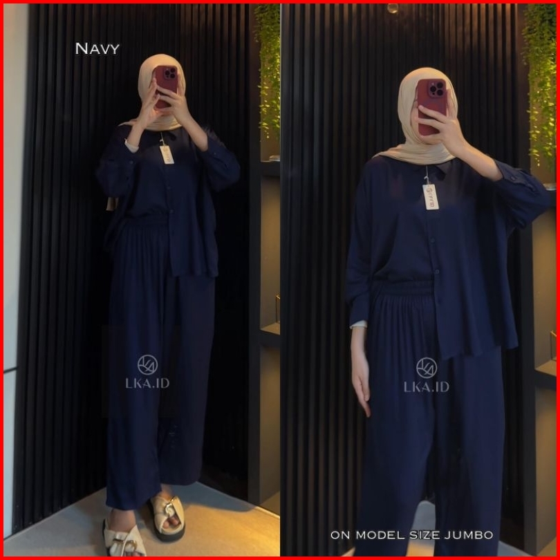 Lka One Set Polos Oversize Rayon Twill Premiun Setelan Kemeja Kulot Wanita Kekinian