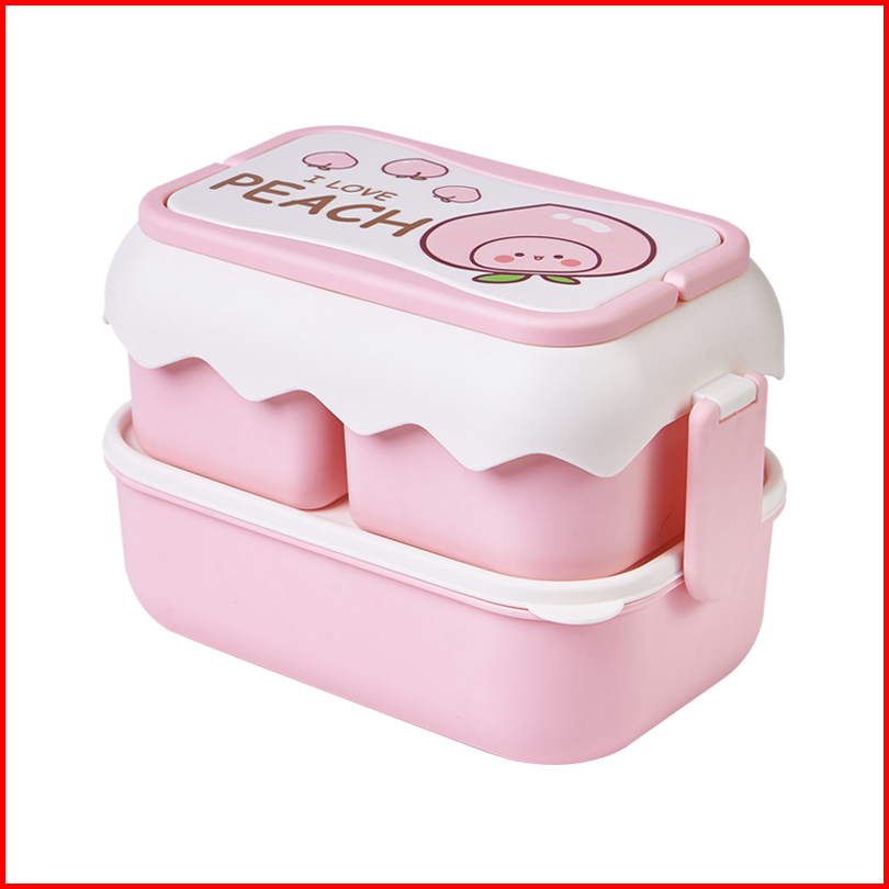 Lunchbox 2 Susun Kotak Bekal Makan Siang Anti Bocor Anti Tumpah Free Sendok Garpu Karakter