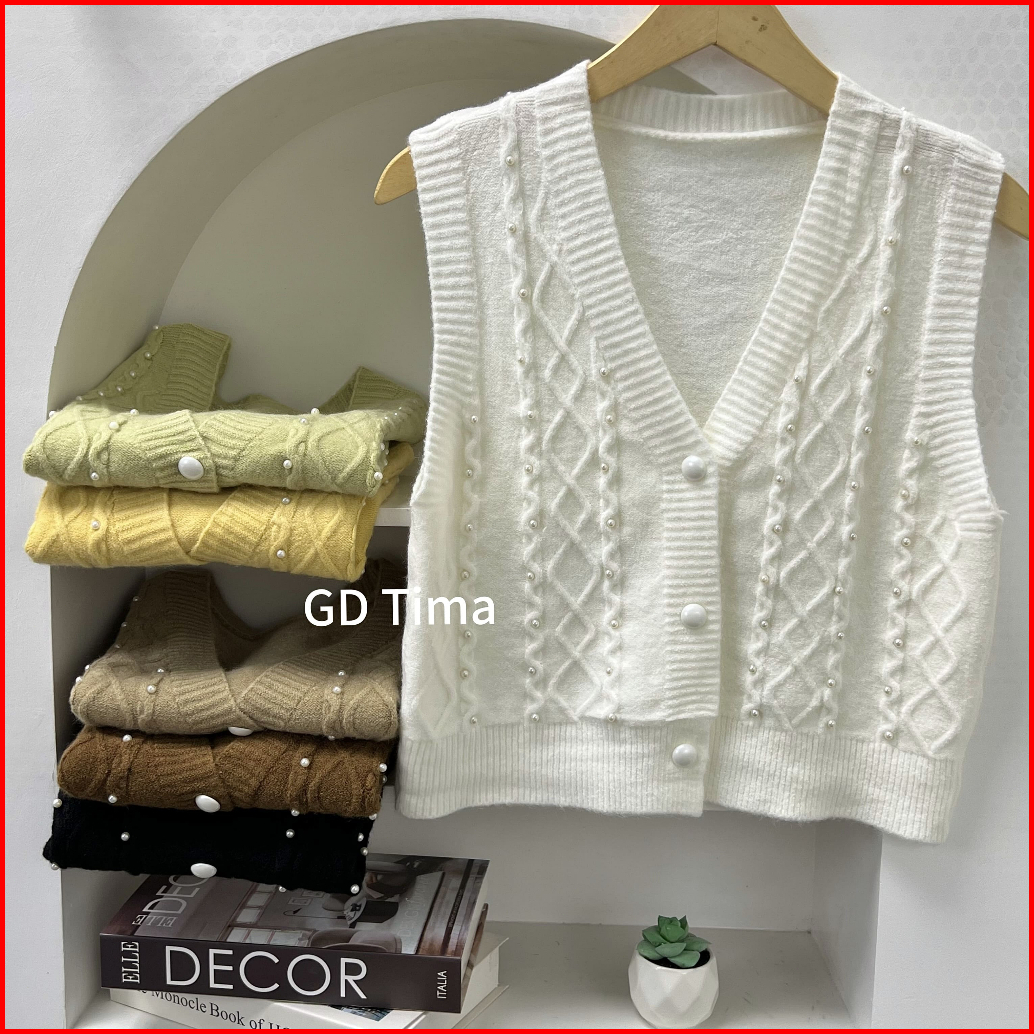Gdtima Rompi Rajut Mutiara Wanita Kekinian Vest Knit Pearl Korea