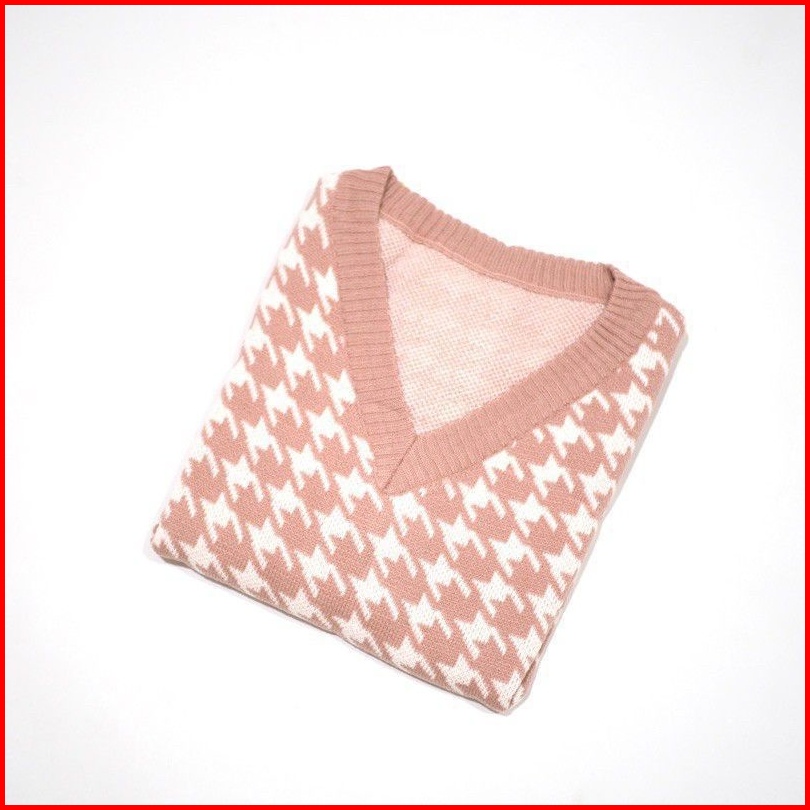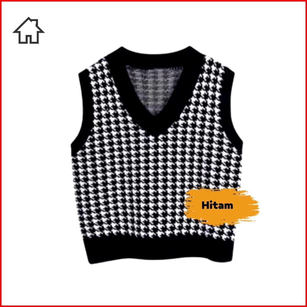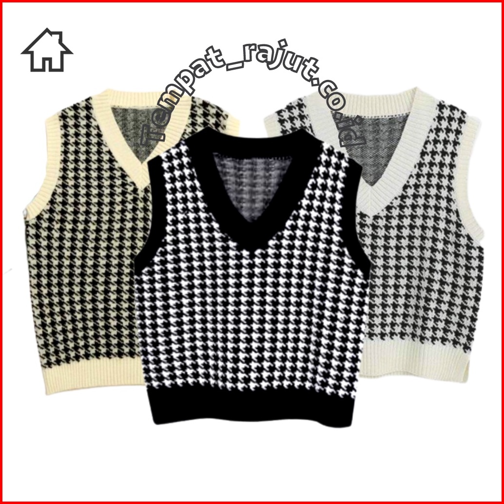 Rompi Rajut Wanita Motif Houndstooth Vneck Korean Style