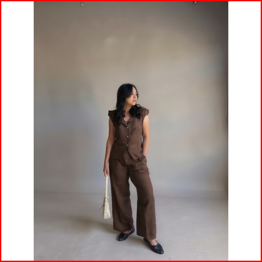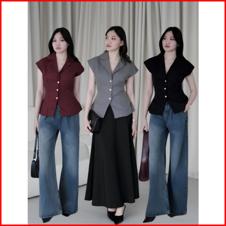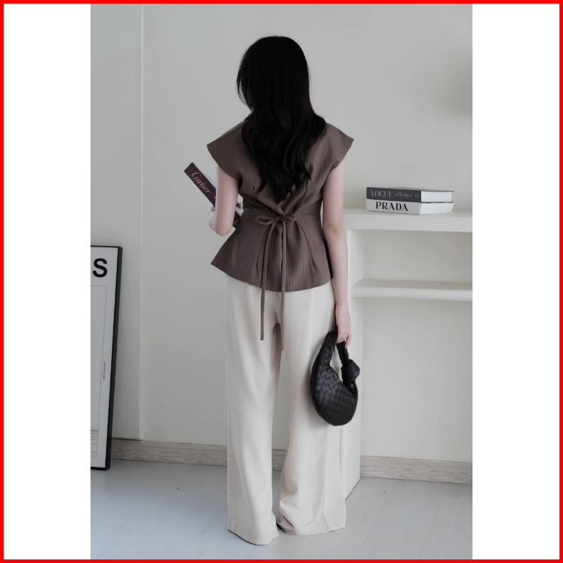 Siva Fitted Vest Stripe Semi Wool - Atasan Wanita Korean Vest Rompi Stripe Sleeveless Vest Top Outher Wanita Terbaru 202