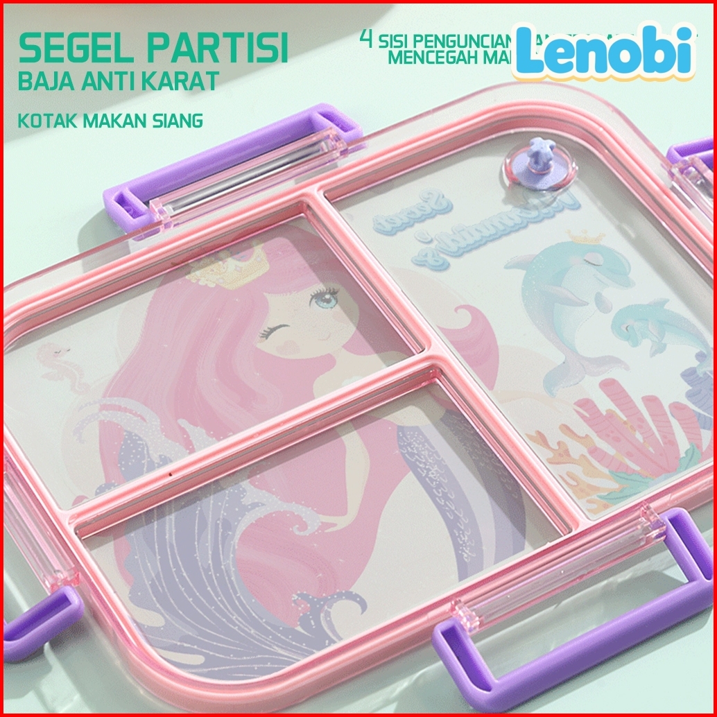 Lenobi - Lunch Box 3 Sekat Astronot Mermaid 1200 Ml - Kotak Bekal Anak Sekolah Bento Box