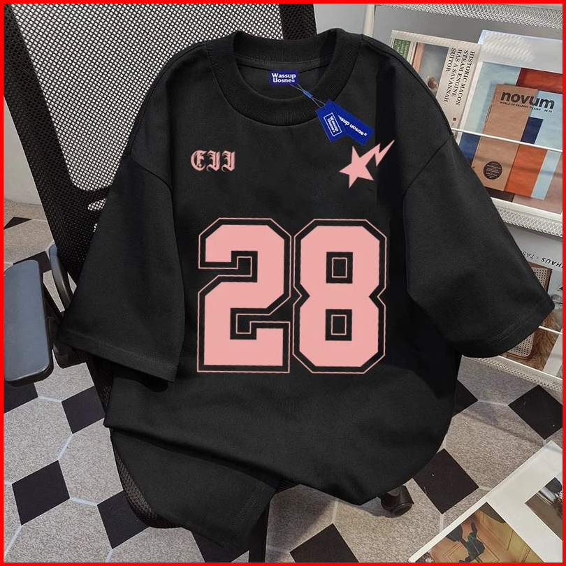 Kaos Musim Panas Dengan Motif Angka 28 Elemen Keren Katun Berkualitas Oversize Bernapas