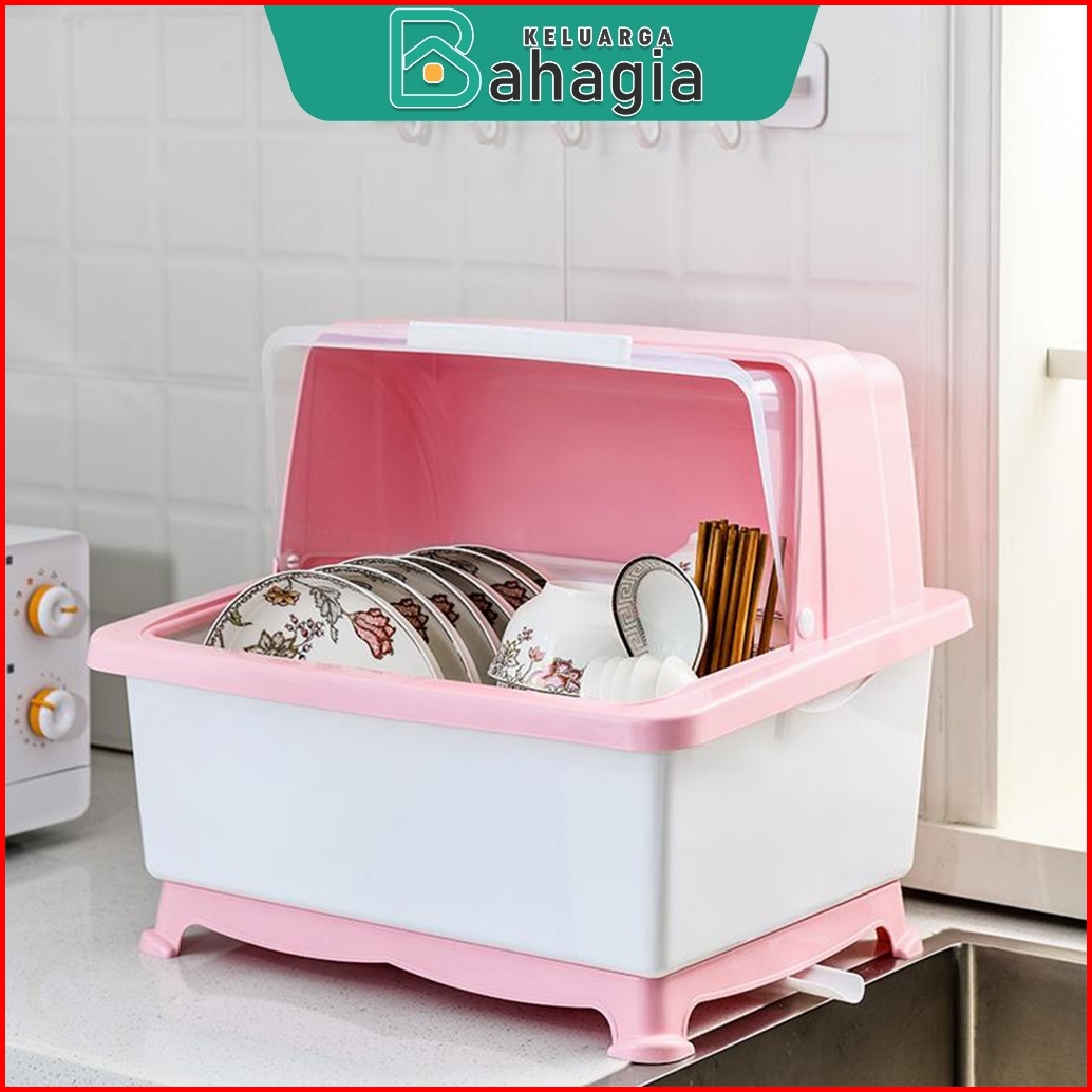 Kb Rak Pengering Air Piring Mangkok Rak Piring Dapur Plastik Dengan Tutup Sendok Garpu Multifungsi