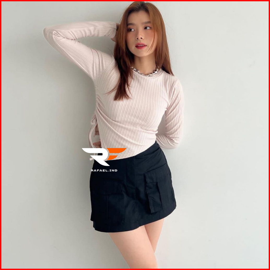 Rok Cargo Mini Skirt Trendy Rok Kekinian Bawahan Pendek Wanita Skort Korean Style Katun Twill Polos