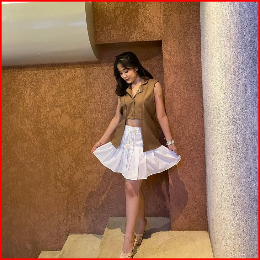 Rok Celana Lipit Mini Korean Style Basic Women Skirt High Waist Celana Pendek Skirt Plisket Tali Depan Outfit Casual Ten
