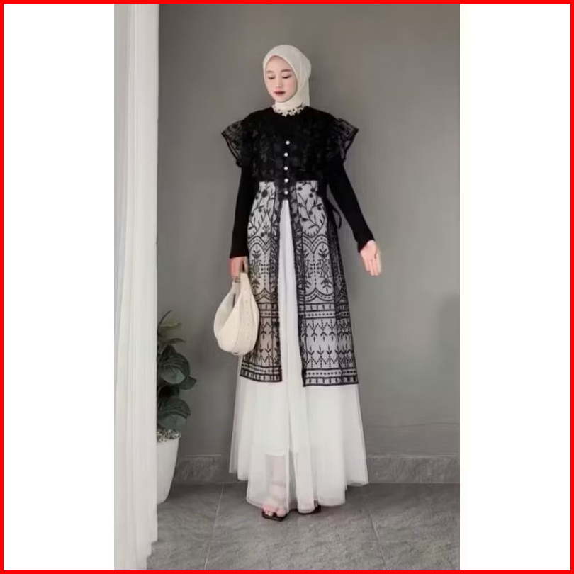 Olla Outer Brokat Long Sojin Kancing Outer Kondangan Outer Wisuda Motif Random