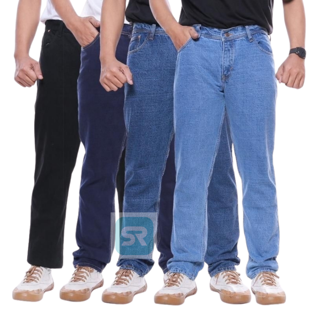 Celana Jeans Pria Denim Warna Hitam Black Premium Tebal Model Standar Reguler