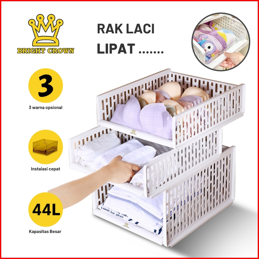 Bright Crown Laci Lipat Rak Baju Storage Susun Rak Geser Serbaguna Tempat Baju Selimut Kaos Kaki
