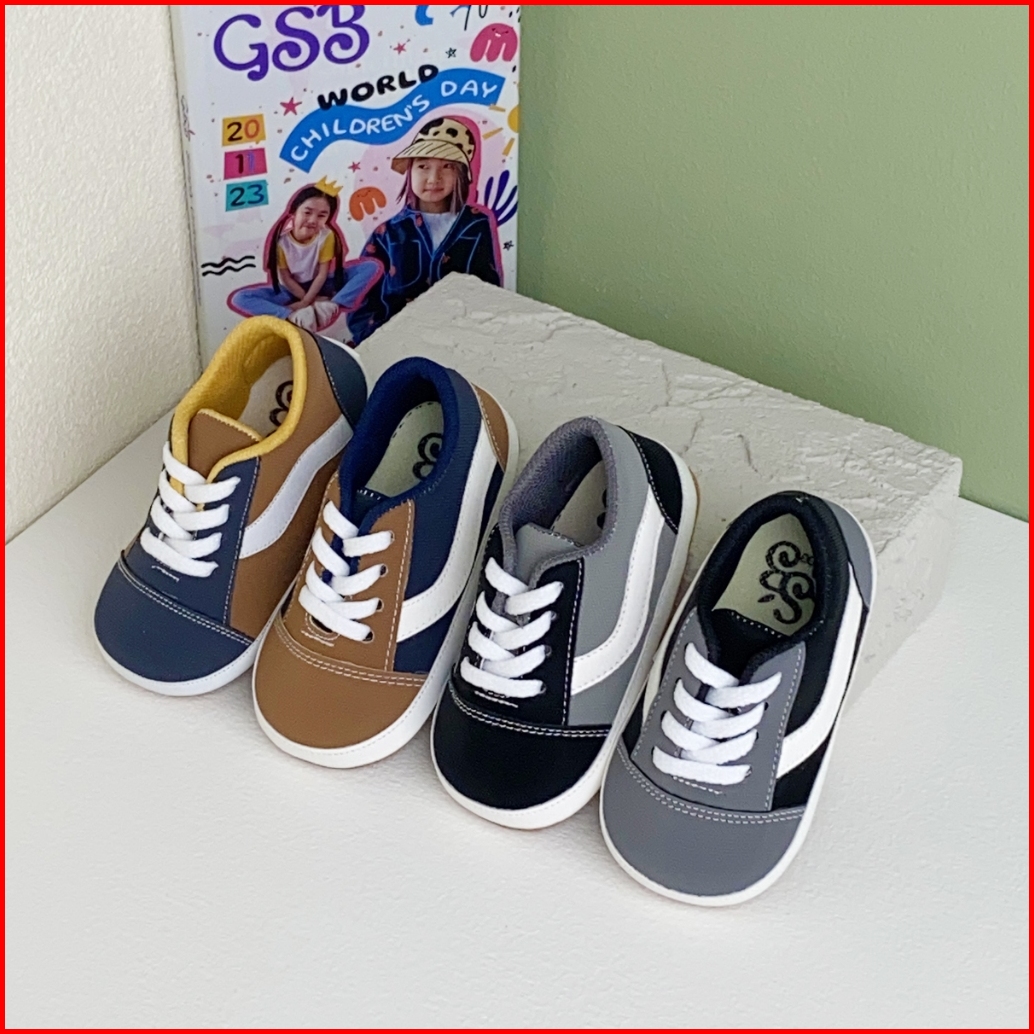 Prewalker Sepatu Bayi Laki Laki Perempuan Umur 2-12 Bulan Model Fans Oldskol Terbaru Ringan Empuk