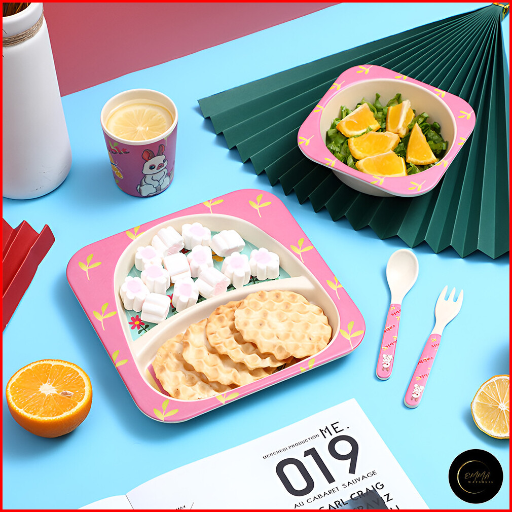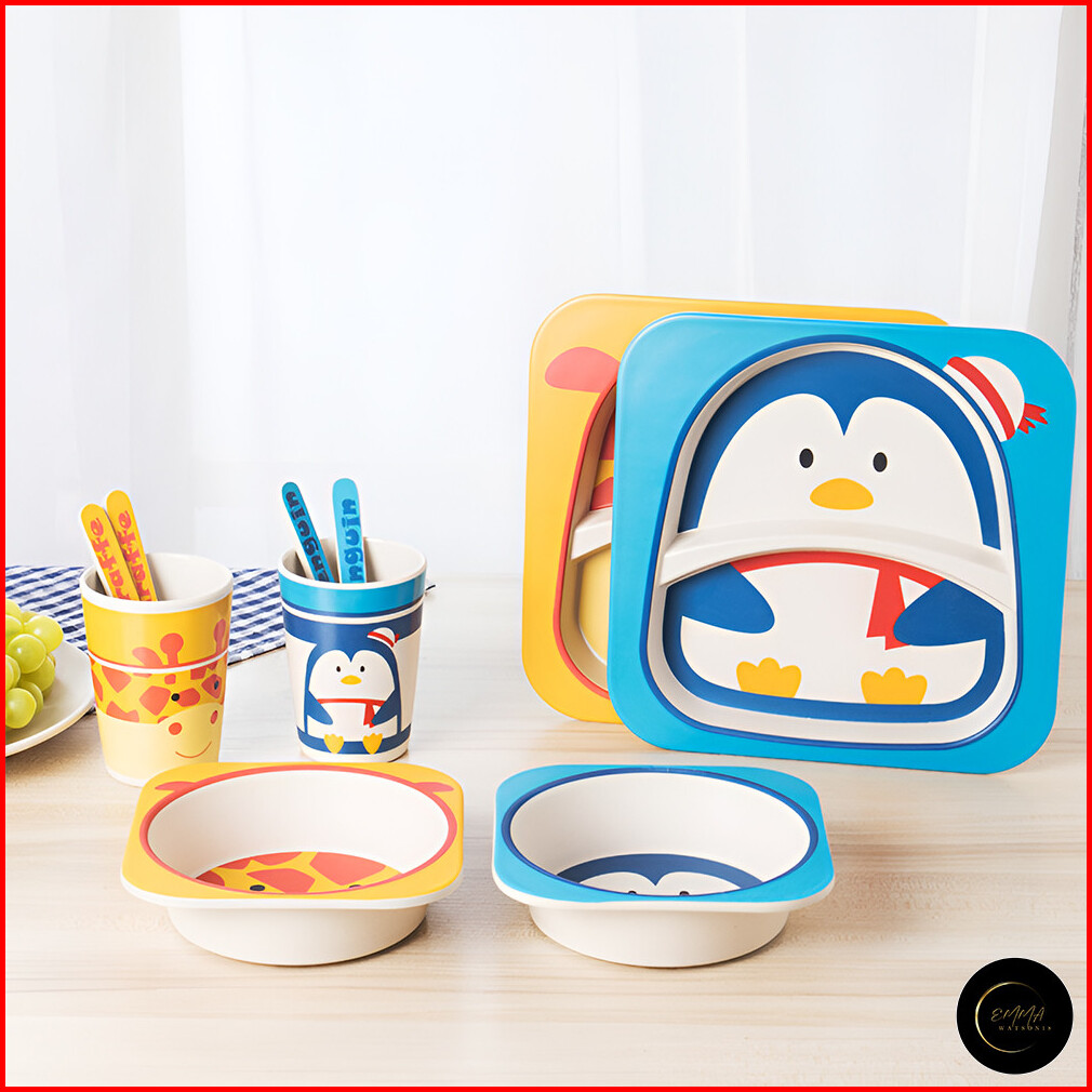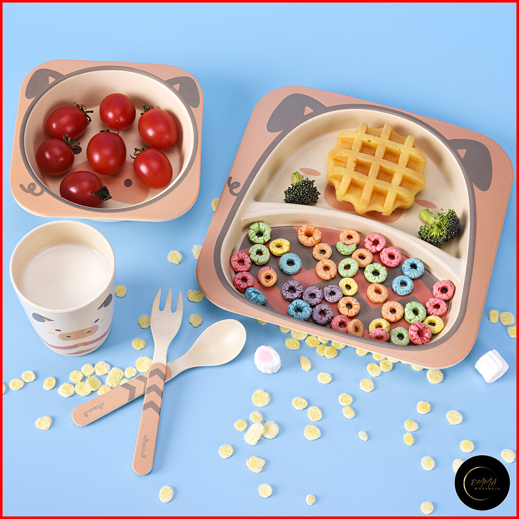 Em Peralatan Makan Anak Set 5 In 1 Tableware Bamboo Motif Kartun