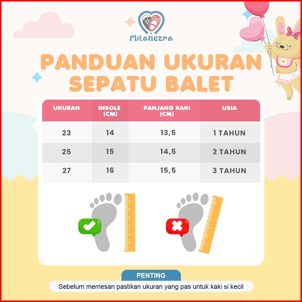 Milanezra - Sepatu Anak Balet Flatshoes Perempuan Umur 1 - 3 Tahun Model Sisuka - Bl02