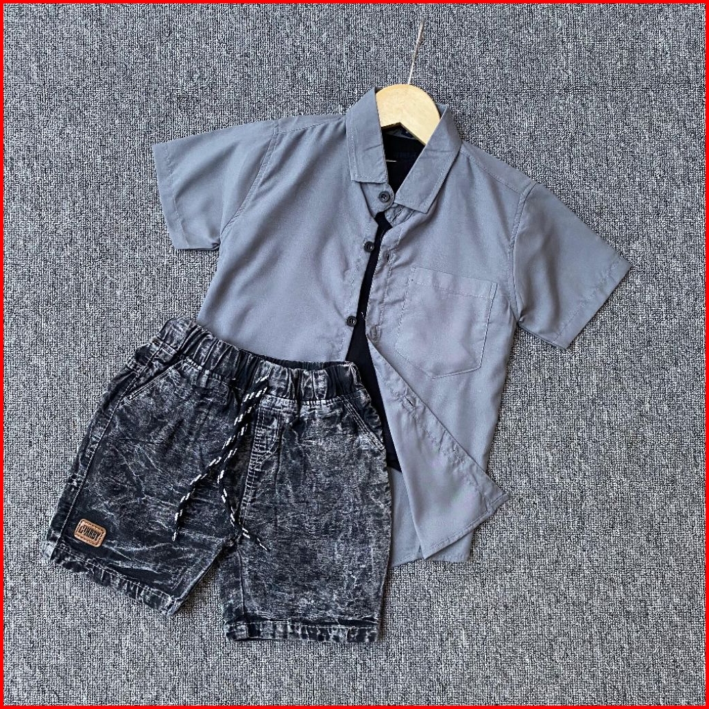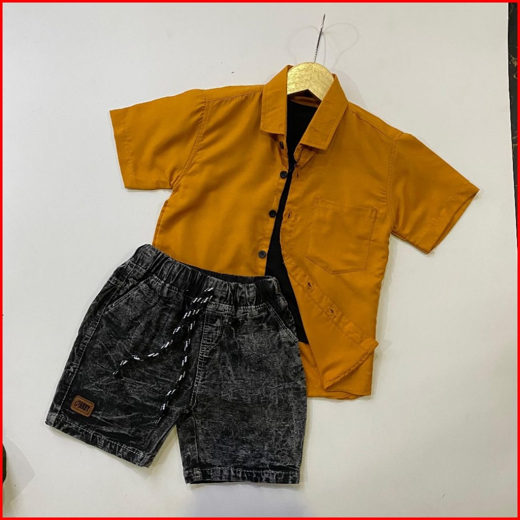 Setelan Anak Laki Laki Kemeja Polos Celana Denim Broadshort Usia 1 - 5 Tahun