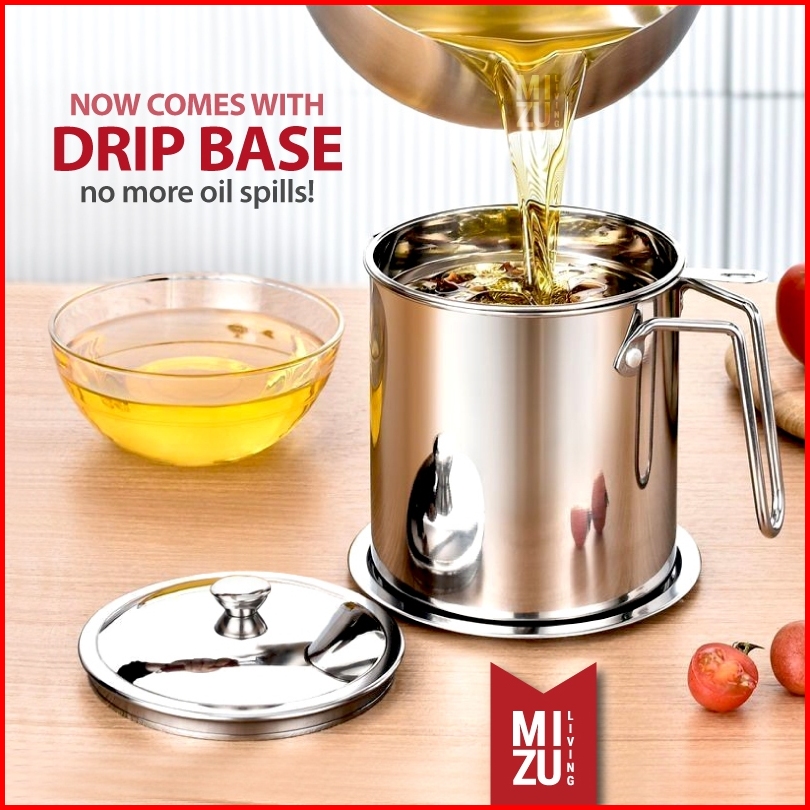 Abura Oil Pot Saringan Tempat Minyak 1200ml Stainless Steel No Drip No Mess